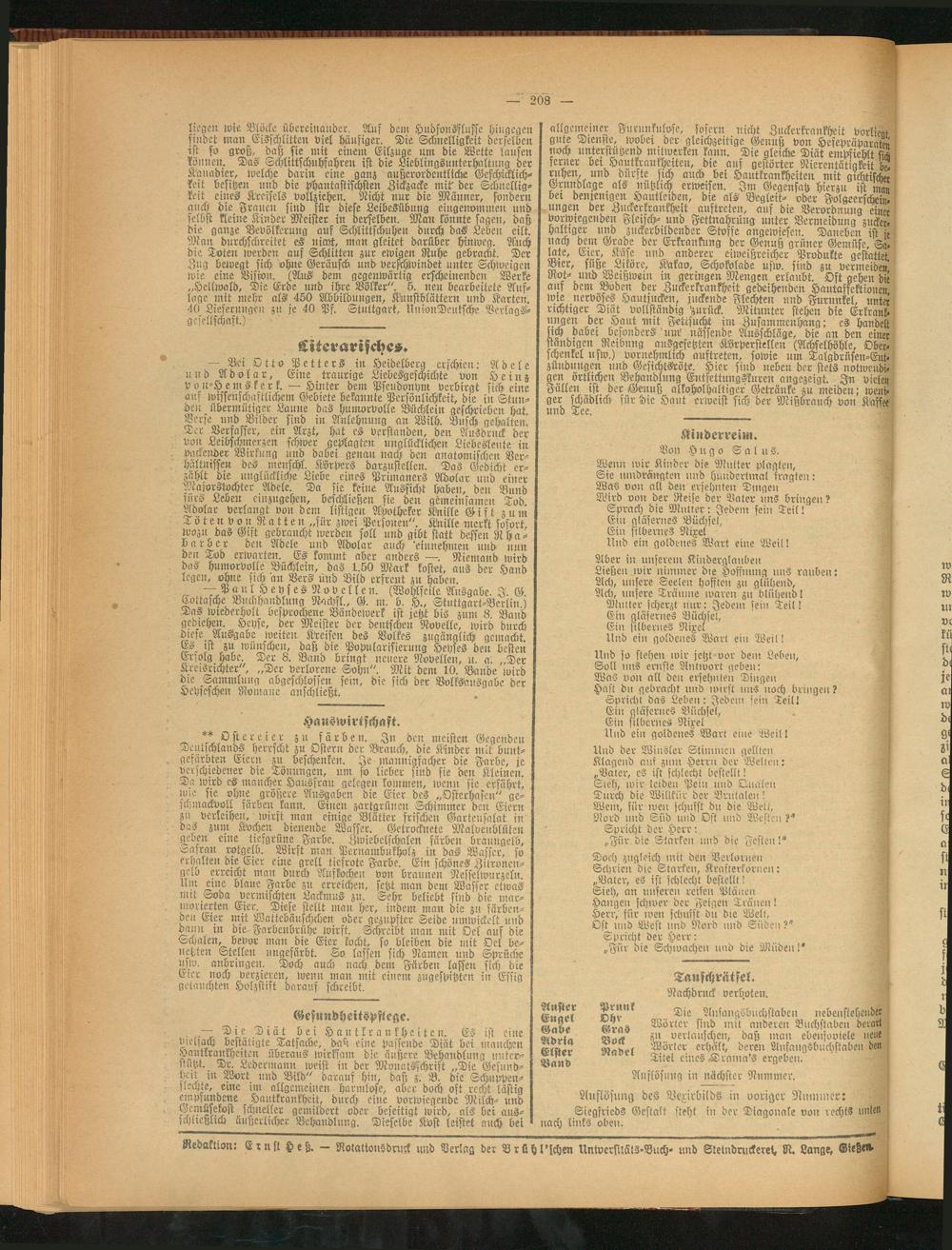 Redaktion: Ernst Heß. — Rolakionsdnick und Verlag der Brühl'schen Untversiläls-Buch» und Stetndruckereh N. Lange, ®tc8<#>