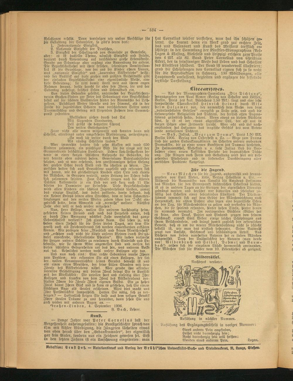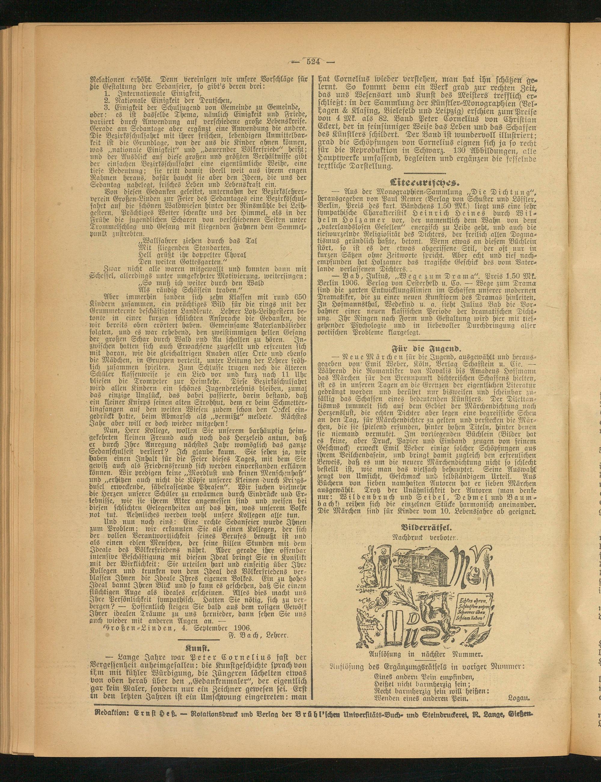 Redaktion; Ernst Heß. — Rotationsdruck und Verlag der Brühl'scheu Universttäts-Buch- und Steindrnckerei. R. Lange, Gießen-