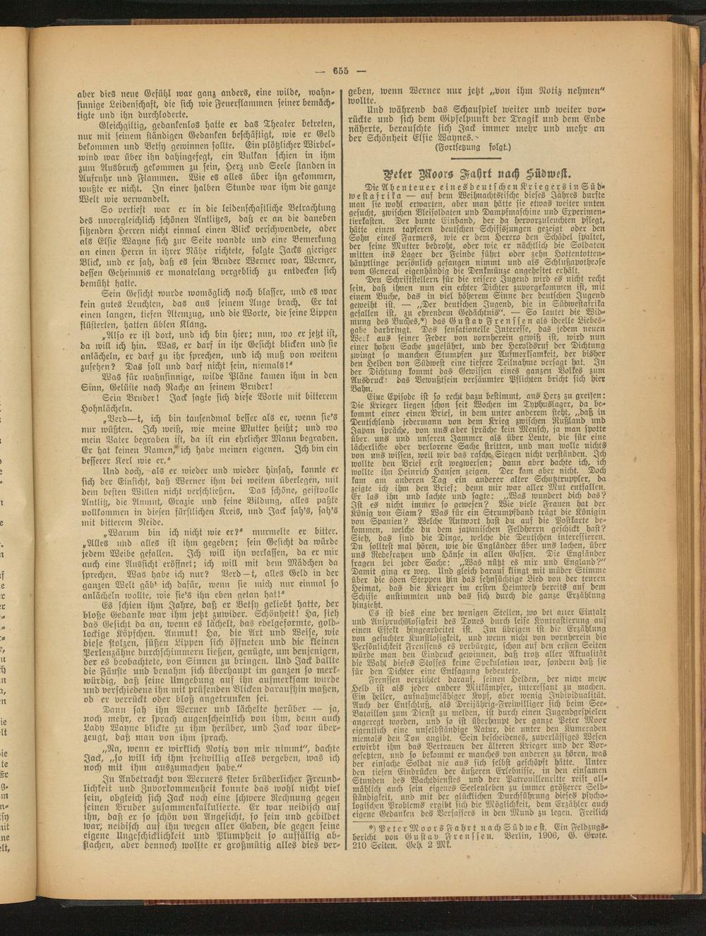 *) Pete rMoo rs F ayrt n ach Südwest. Ein Feldzugsbericht von Gustav Frenssen. Berlin, 1906, G. Grote. 210 Seiten. Geh. 2 Mk.