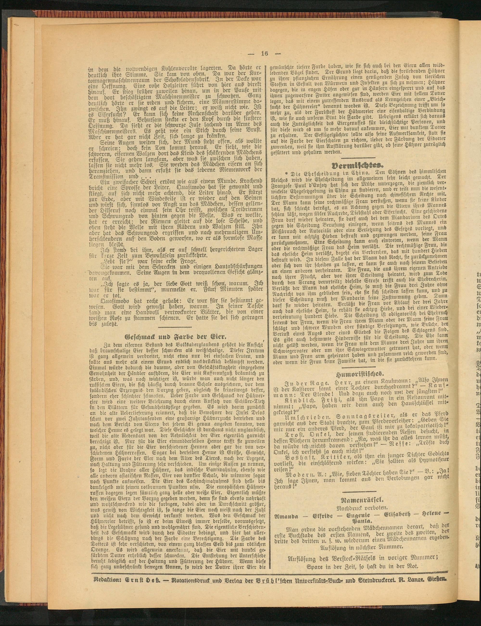 Redaktion: Ernst Heb. — Rotationsdruck und Verlas der Brßhl'schen Universitäts-Buch- und Skelndruckeret. R. Lana«. Gtebeu.