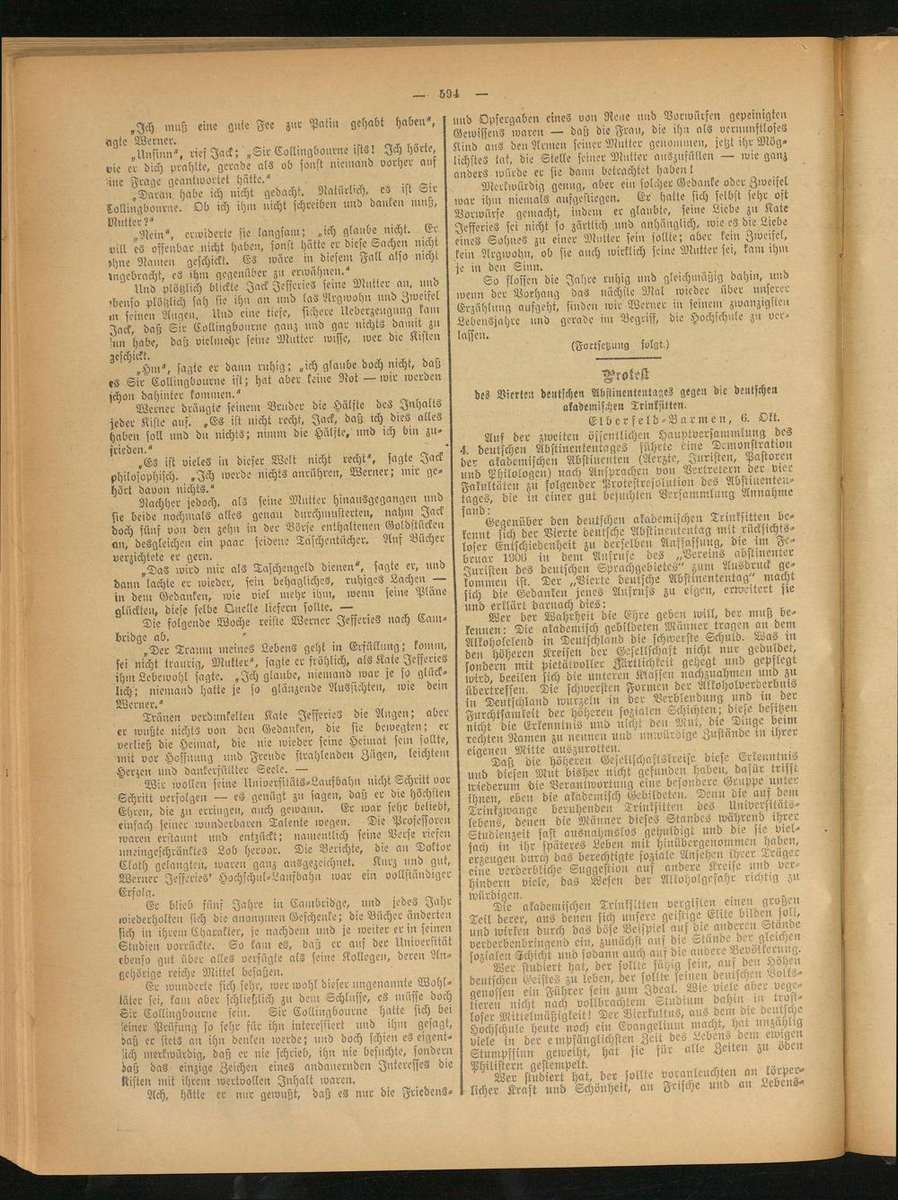 Artt der zweiten öffentlichen Hauptversammlung des deutschen Abstmententages führte eine Demonstration der akademischen Abstinenten (Aerzte, Juristen, Pastoren und Philologen) nach Ansprachen von Vertretern demvwr Fakultäten zu folgender Protestre;o1urwn des Avstinenttu- tages, die in einer gut besuchten Versammlung Annahme