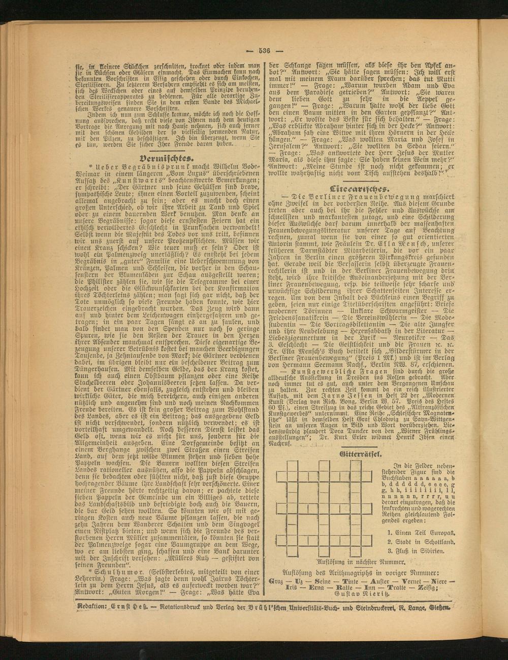 Redaktion: Ernst Heß. — Rotationsdruck und Verlag der Brühl'fchen Universitäts-Buch- und Steindruckerei. R. Lange, Gieße«»