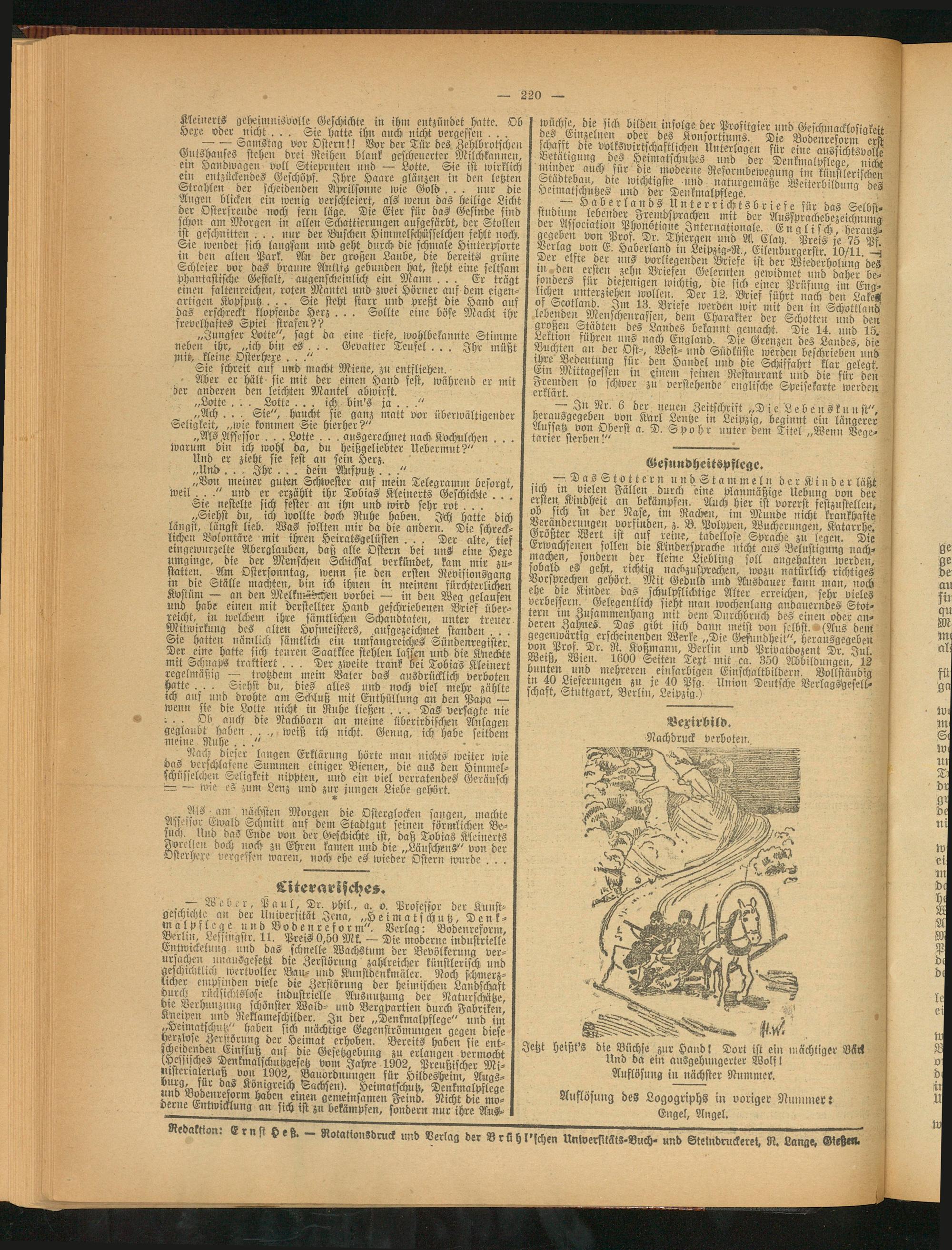 Redakk.on. Ernst Heß. Rotationsdruck und Verlag der Brühl'sche» UniversitätS.Buch- und Stelndruckeret, R. Lange, Gießen.