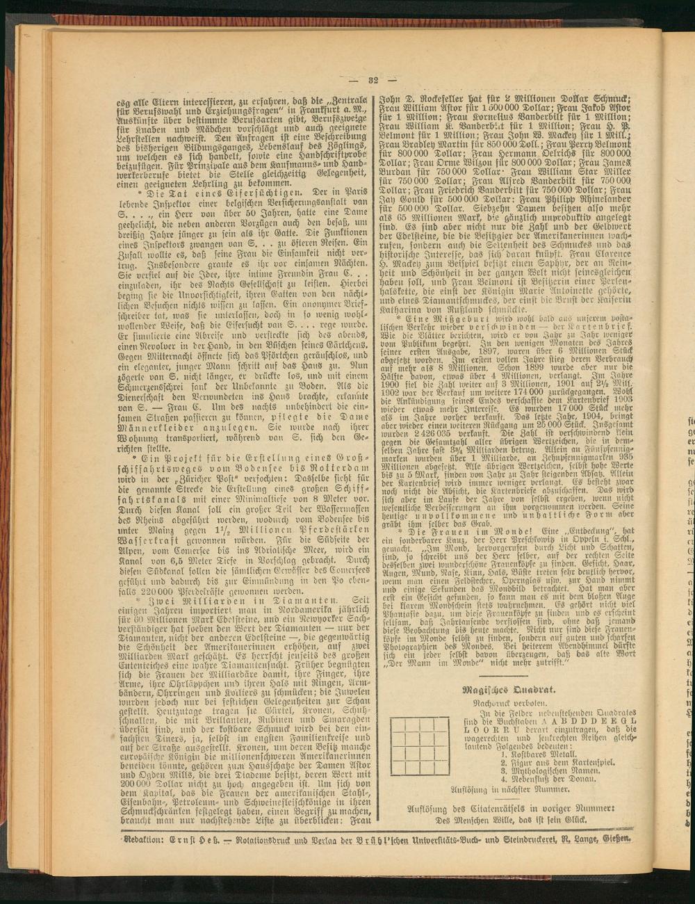 -Redaktion: Ernst Heß. — Rotationsdruck und Vertag der Brühl'scheu Universttäts-Buch- und Steindruckerech R, Lange, Gießen«