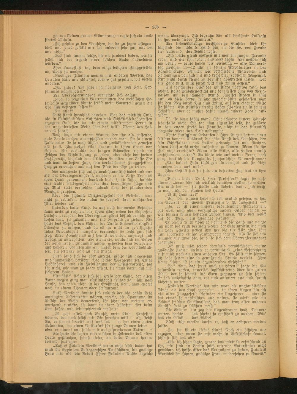 Ruth stand sprachlos daneben. War das wirklich Suse, die in kleinstädtischen Ansichten und Schicklichkeitsbegriffen erzogene Suse, die da mit einem wildfremden Herrn in der ungeniertesten Weise über das heikle Thema des Heiratens sprach.