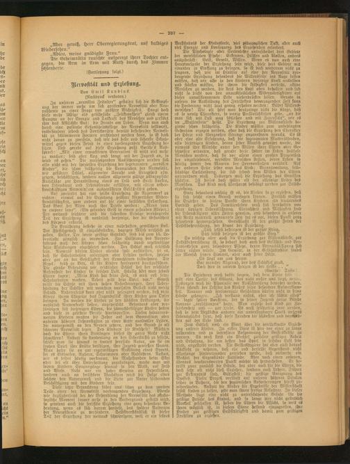 Diese letzte Betrachtung führt uns schon zu dem zweiten Teile einer der Nervosität vorbeugenden Erziehung. Ebenso wie ärztlicherseits bei der Behandlung der Nervosität das psychologische Moment immer mehr in den Vordergrund gestellt wird, so gewinnt auch die seelische Erziehung eine ganz besondere Bedeutung, wenn cs sich darum handelt, das spätere Austreten der Neurasthenie zu verhindern. Selbstverständlich ist dieser Teil der Erziehung der weitaus schwierigere, weil er ein seines