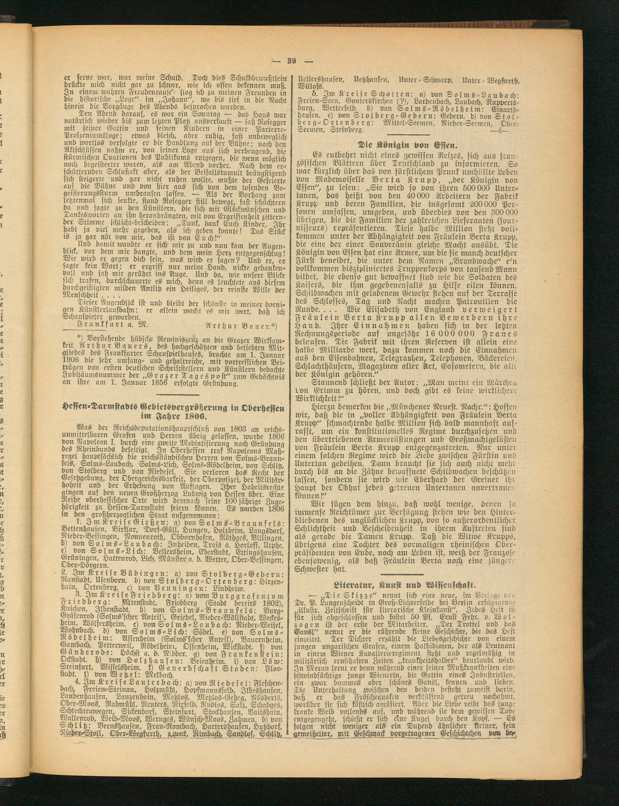 , *), Vorstehende hübsche Reminiszenz an die Grazer Wirksam- kert Arthur Bauers, des hochgeschätzten und beliebten Mit- SlEs des Frankfurter Schauspielhauses, brachte am 1. Januar 130(5 die sehr umfang- und gehaltreiche, mit vortrefflichen Beitragen von ersten deutschen Schriftstellern und Künstlern bedachte Jubstaumsnummer der „G r a z e r T a g e s p v st" zum Gedächtnis an thre am 1. Januar 1856 erfolgte Gründung.