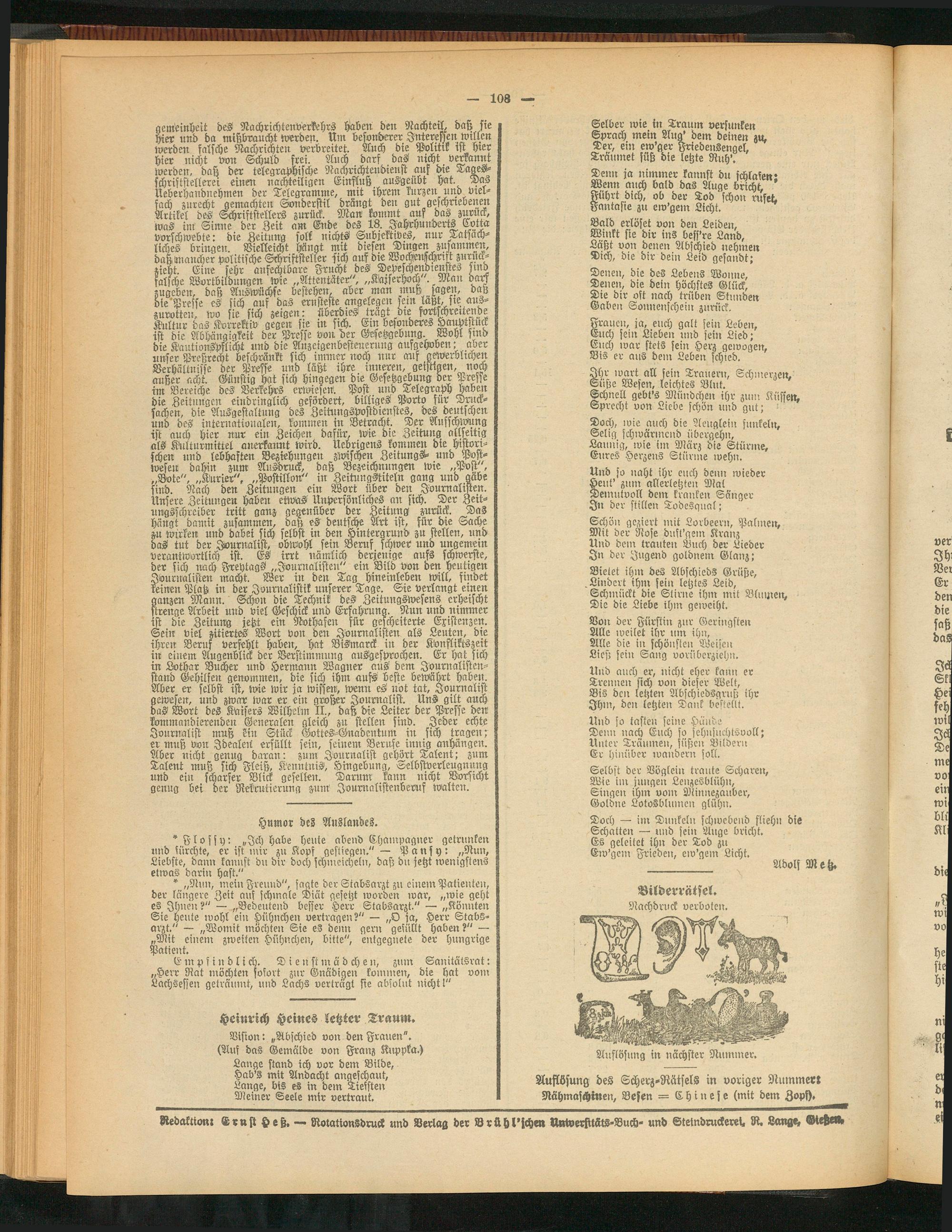 Redaktion: Trust Hetz. — Rotationsdruck und Verlag der Brühl'schen Untversttäts-Buch- und Stetndruckeret, R. Lange. Ttetzea,