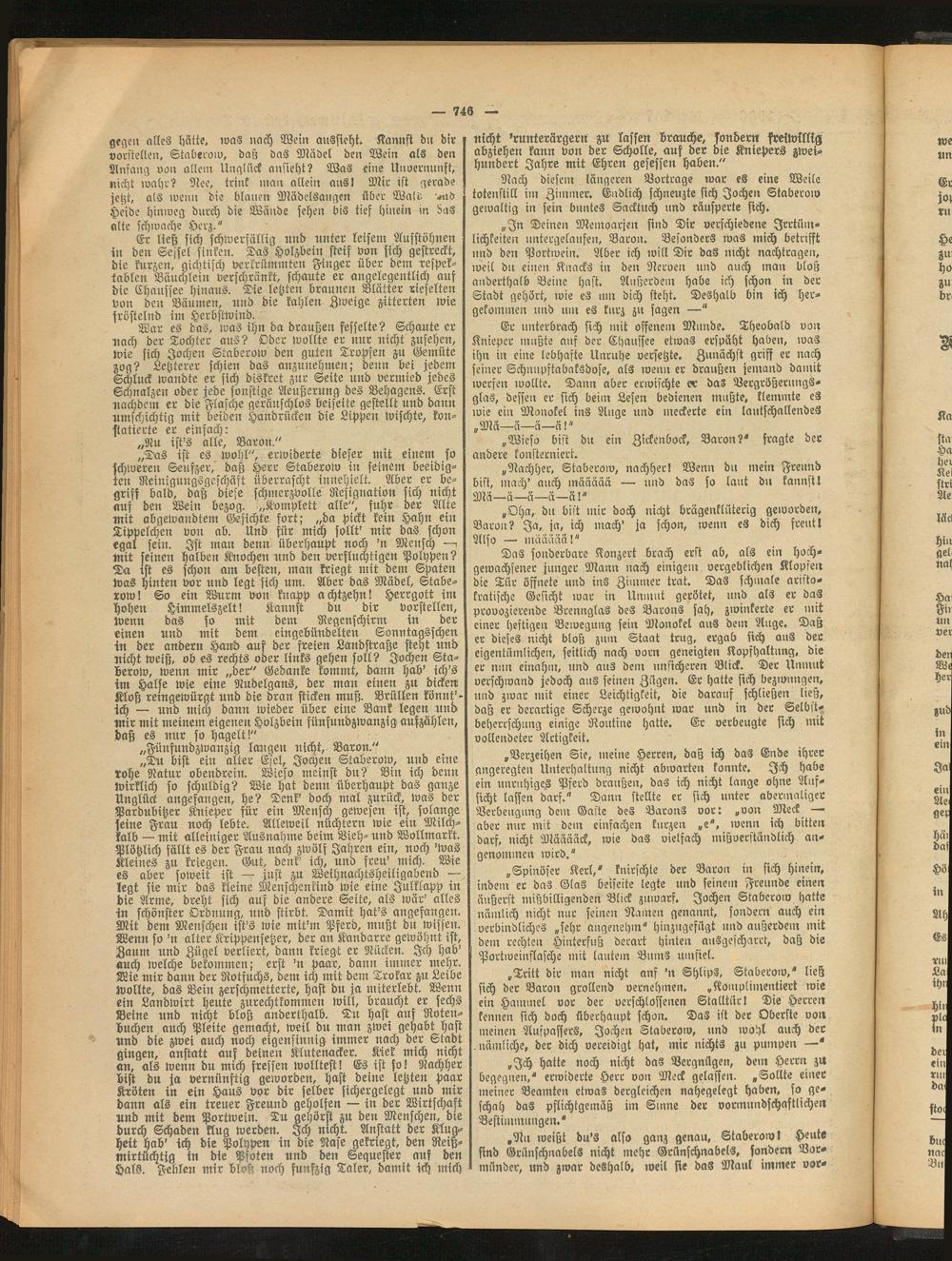 gegen alles hätte, was nach Wein aussicht. Kannst dn dir vorstellen, Staberow, das; das Mädel den Wein als den Anfang von allein Unglück ansieht? Was eine Unvernunft, nicht wahr? Nee, trink inan allein ans! Mir ist gerade jetzt, als wenn die blauen Mädelsaugen über Wald vntr Heide hinweg durch die Wände sehen bis tief hinein in das alte schwache Herz."