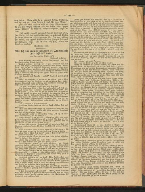 Ich muß wohl ein sehr erstauntes Gesicht gemacht haben, beim bas Mütterchen lachte aus vollem Halse. „Hahaha — Wie Ihr mich anguckt! Ihr glaubt bet nicht? un boch is et fo! Ich war in ber himmlische Herrlichkeit brin; Golt — wo hält ich bann gebucht, daß et so ebbe» uf der Welt gab? Akrat so muß et im Himmel sein!"