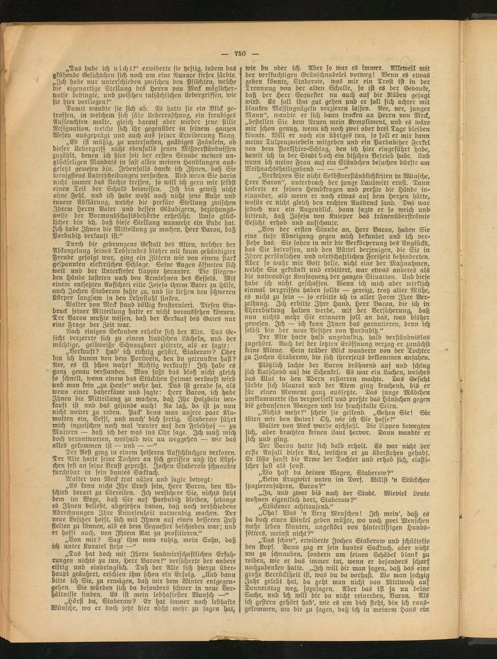 „Es kann nicht Ihr Ernst sein, Herr Baron, den Abschied derart zu übereilen. Ich versichere Sie, nichts steht dem im Megc, daß Sie auf Pardubitz bleiben, solange es Ihnen beliebt, abgesehen davon, daß noch verschiedene Abrechnungen Ihre Anwesenheit notwendig machen. Der neue Besitzer hofft, sich mit Ihnen auf einen besseren Fuß stellen zu können, als es dem Sequester beschieden war; und er hofft auch, von Ihrem Rat zu profitieren."