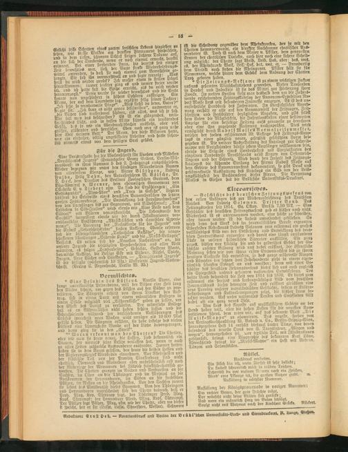 nu hie Wochenschrift für Knaben und Mädchen MuttcNa nÄ'^Ju g en d (He rau s geb er Gedrg Gellert, ®er(mr^ niTrShntfi in ihrer Nummer 5 des 2. Jahrgangs ausgesckMebeu. «ntpkg« hxaegnen wir unter den ständigen Mitarbeitern Namen