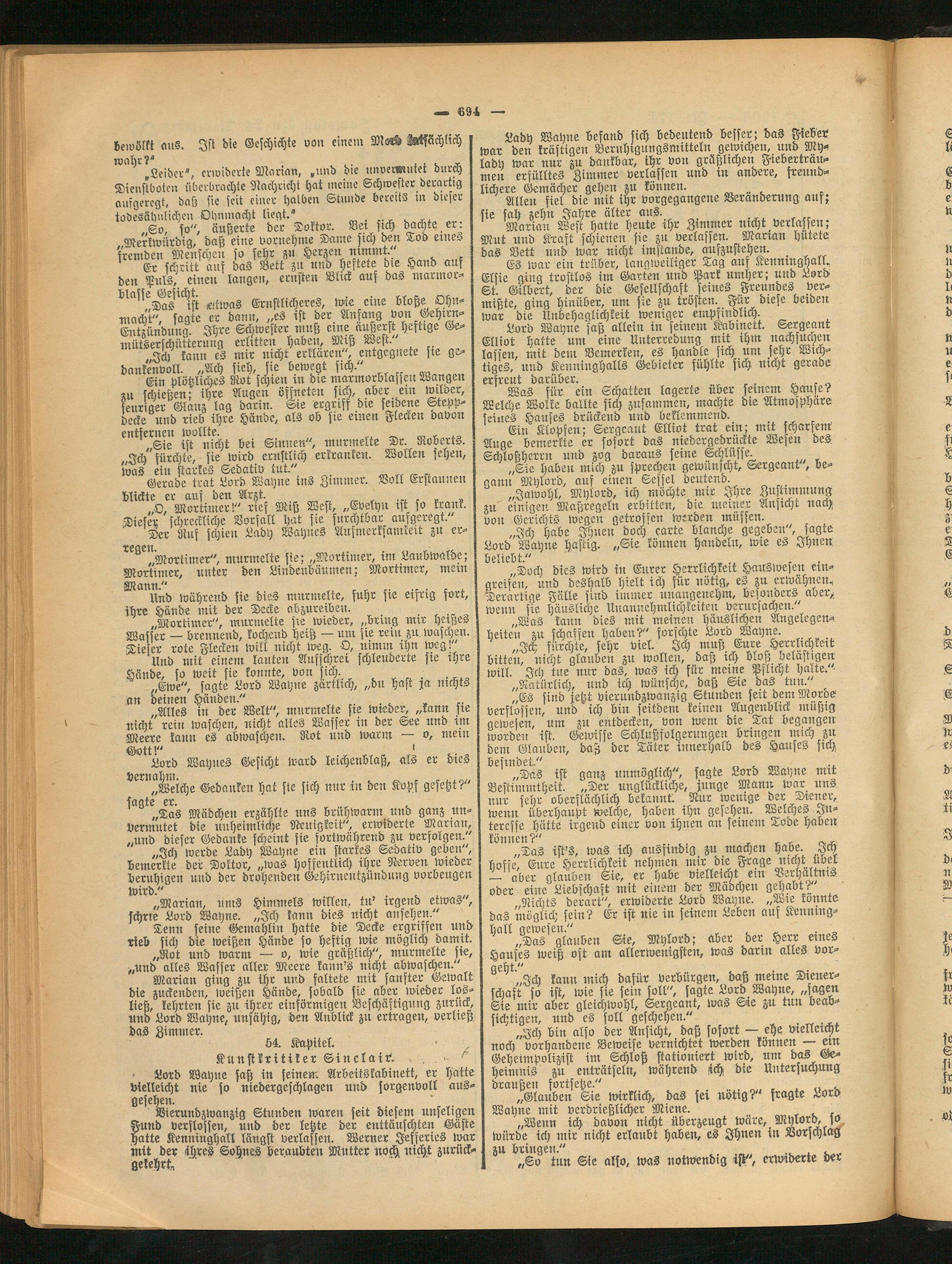 „Ich werde Lady Wayne ein starkes Sedativ geben", bemerkte der Doktor, „was hoffentlich ihre Nerven wieder beruhigen und der drohenden Gehirnentzündung vorbeugen wird." . z