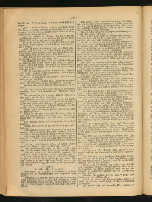 Lady Wayne befand sich bedeutend besser; das Fieber war den kräftigen Beruhigiingsmitteln gewichen, und My-, lady war nur zu dankbar, ihr von gräßlichen Fieberträumen erfülltes Zimmer verlassen und in andere, freundlichere Gemächer gehen zu können. „