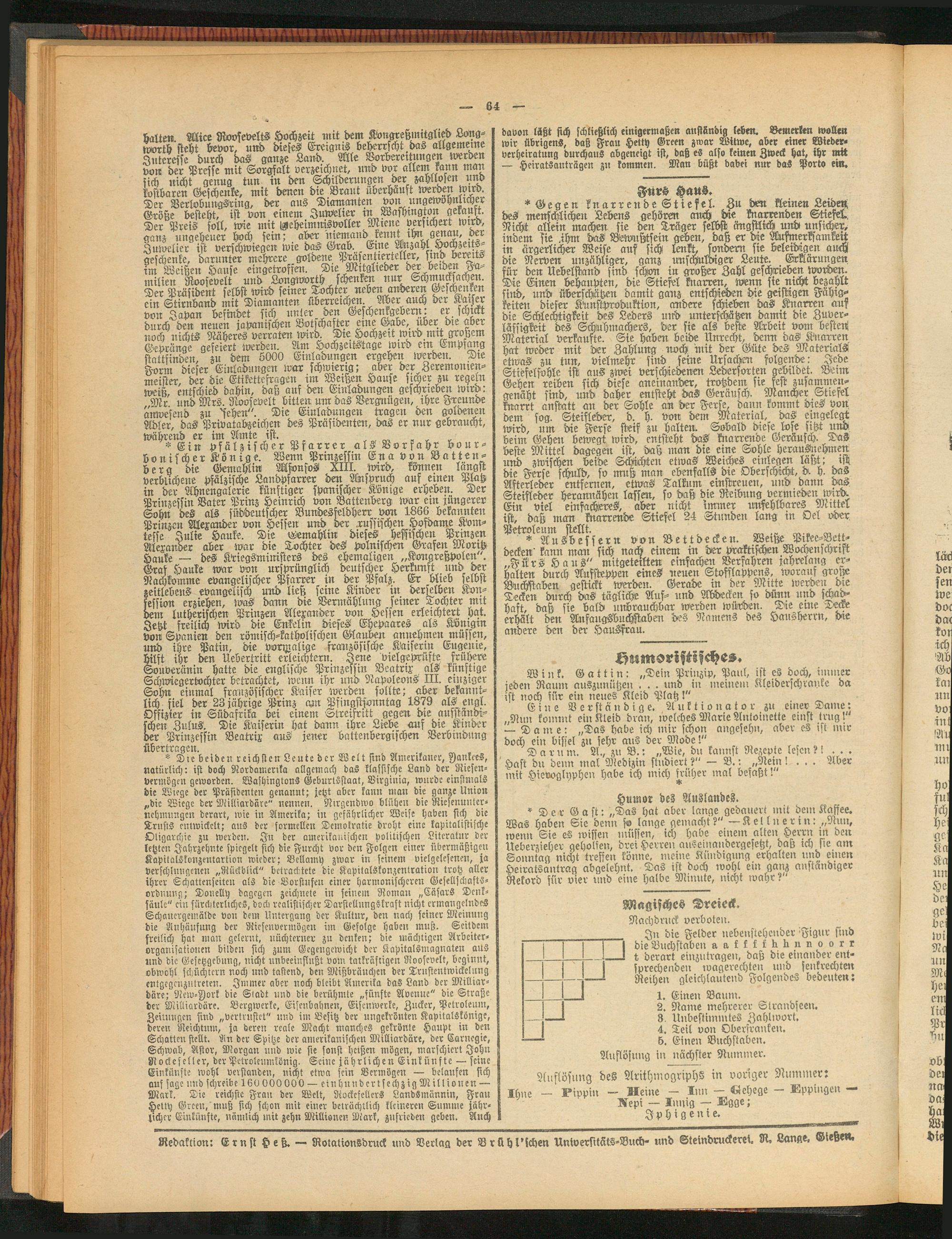 Redaktion: Ernst Heß. — Rotationsdruck und Verlag der Vrühl'ichen Unlversttäts-Buch- und Steindruckeret. R, Lange. Dießen«