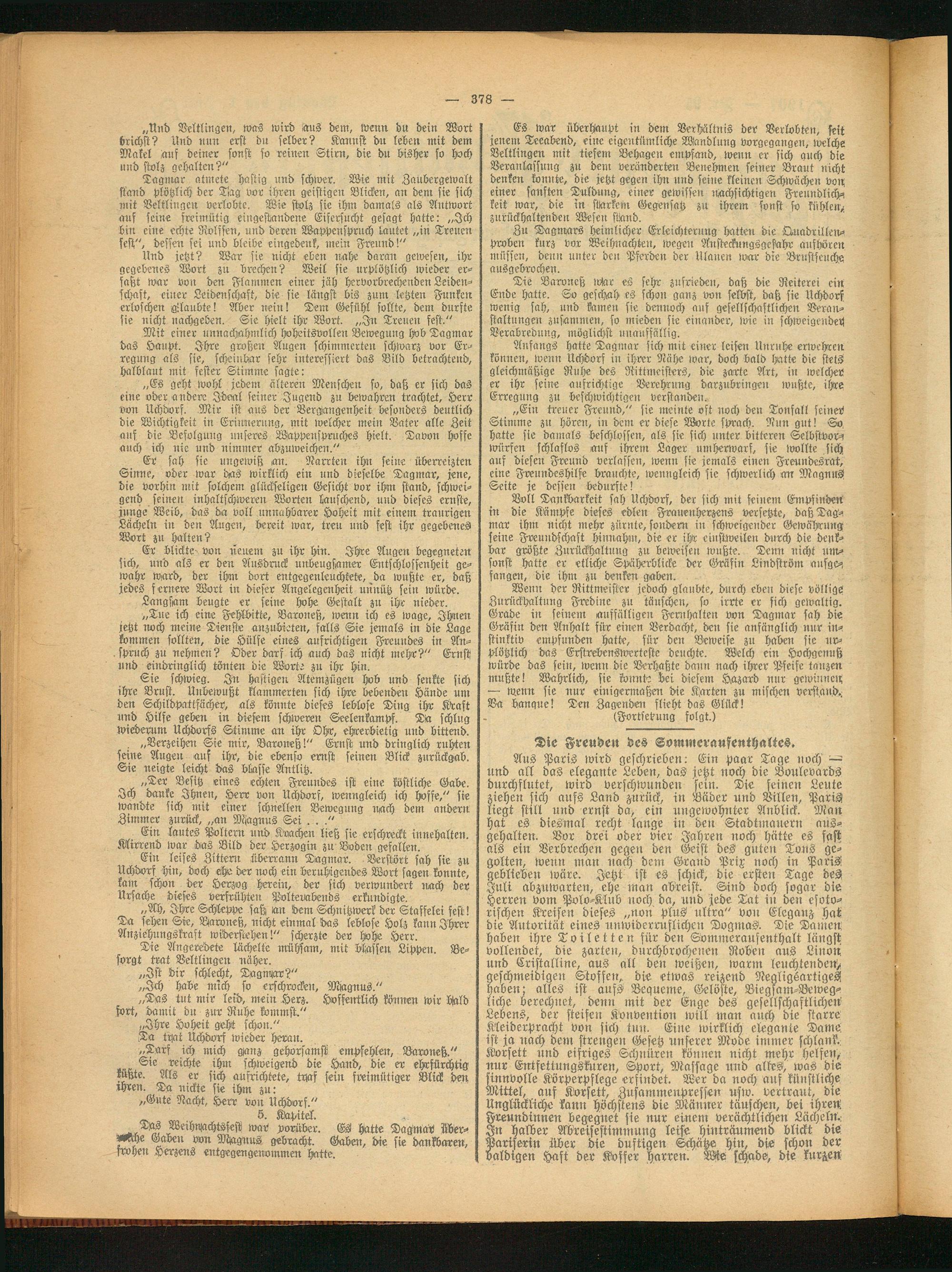 „Tue ich eine Fehlbitte, Baroneß, wenn ich es wage. Ihnen jetzt noch meine Dienste anzubieten, falls Sie jemals in die Lage kommen sollten, die Hülfe eines aufrichtigen Freundes in Anspruch zu nehmen? Oder darf ich auch das nicht mehr?" Ernst und eindringlich tönten die Worte zu ihr hin.