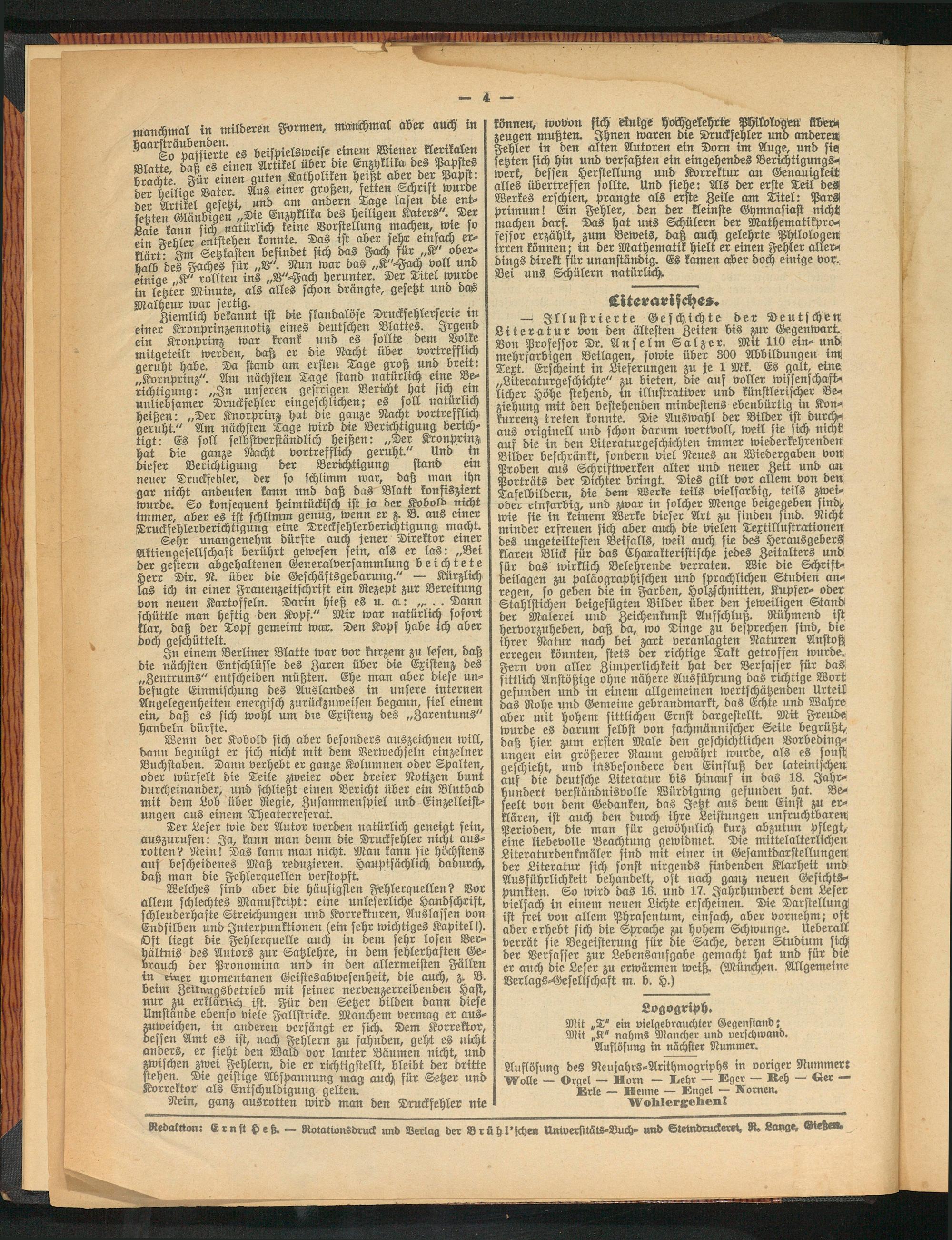 Redaktion: Ernst Heß. — Rotationsdruck und Verlag der Brühl'fchen Universitäts-Buch- und Eletndruckerei. R. Langem Dieb«.