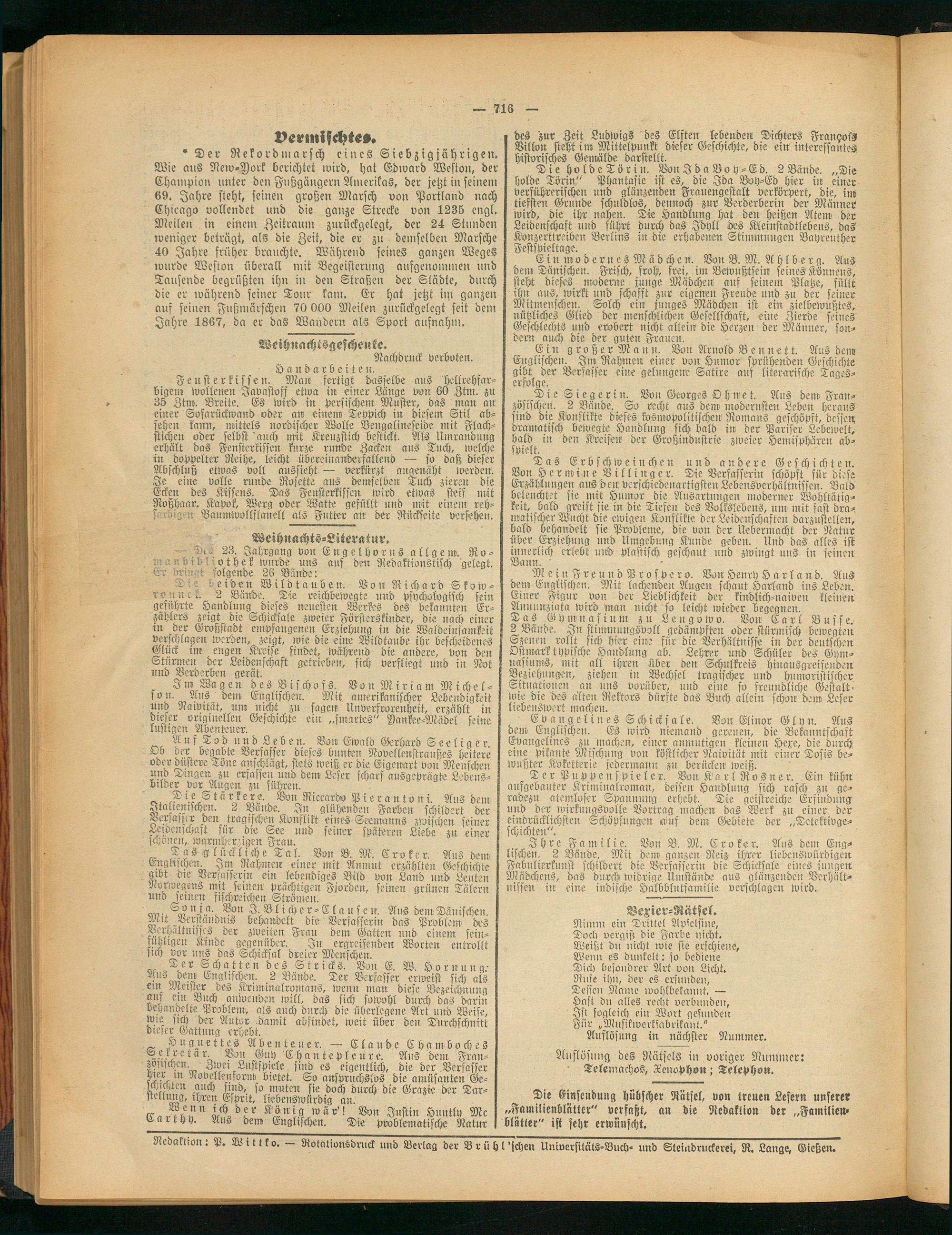 Die Einsendung hübscher Niitsel, von treuen Lesern unserer „Familienblätter" verfaßt, an die Redaktion der „Familien- blätter" ist sehr erwünscht.