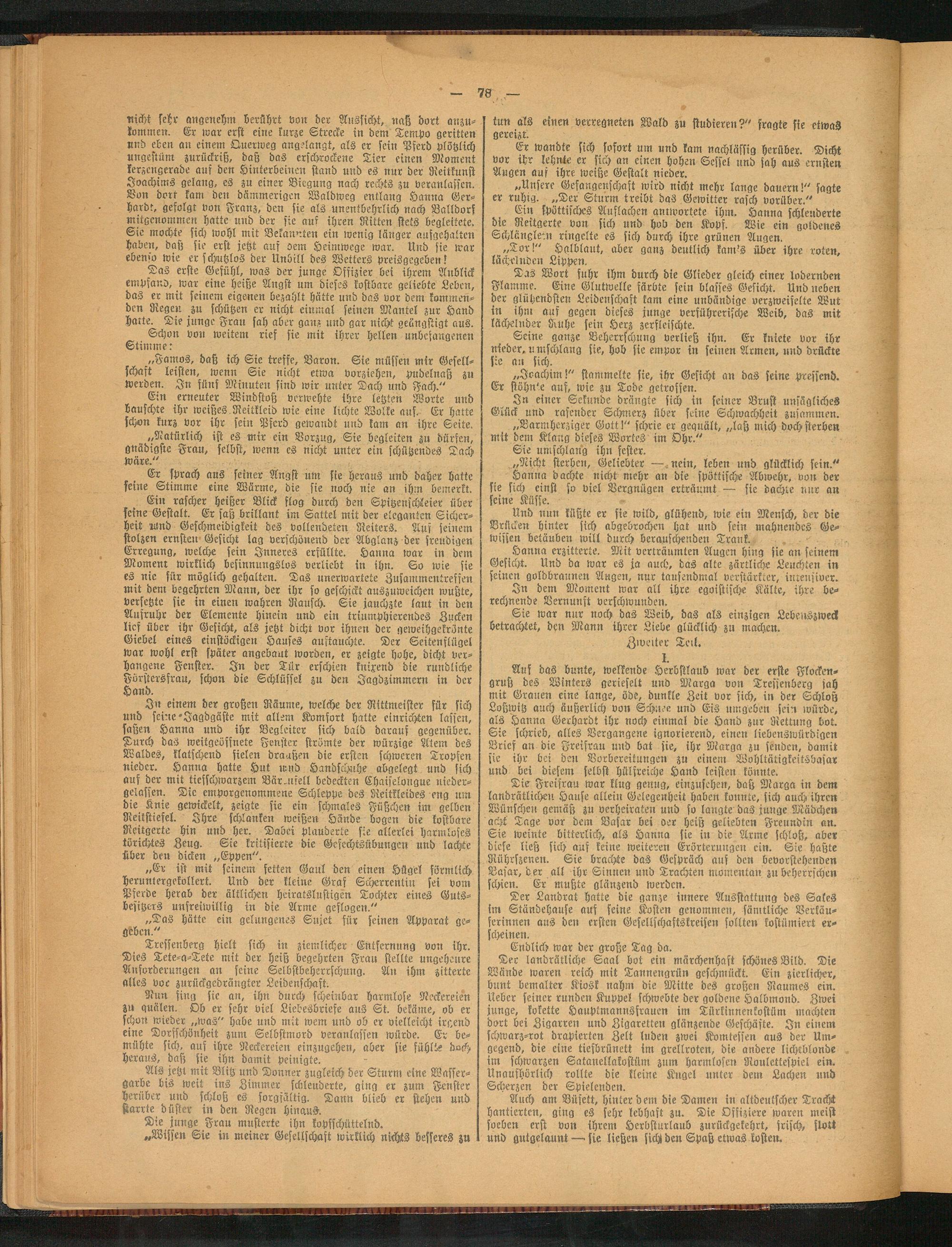 Ein rascher heißer Blick flog durch den Spitzenschleier über seine Gestalt. Er saß brillant im Sattel mit der eleganten Sicherheit mnd Geschmeidigkeit des vollendeten Reiters. Auf seinem stolzen ernsten Gesicht lag verschonend der Abglanz der freudigen Erregung, welche sein Inneres erfüllte. Hanna war in dem Moment wirklich besinnungslos verliebt in ihn. So wie sie es nie für möglich gehalten. Das unerwartete Zusammentreffen mit dem begehrten Mann, der ihr so geschickt auszuweichen wußte, versetzte sie in einen wahren Rausch. Sie jauchzte laut in den Aufruhr der Elemente hinein und ein triumphierendes Zucken lief über ihr Gesicht, als jetzt dicht vor ihnen der geweihgekrönte Giebel eines einstöckigen Hauses auftauchte. Der Seitenflügel war wohl erst später angebaut worden, er zeigte hohe, dicht verhangene Fenster. In der Tür erschien knixend die rundliche Fürstersfrau, schon die Schlüssel zu den Jagdzimmcrn in der Hand.