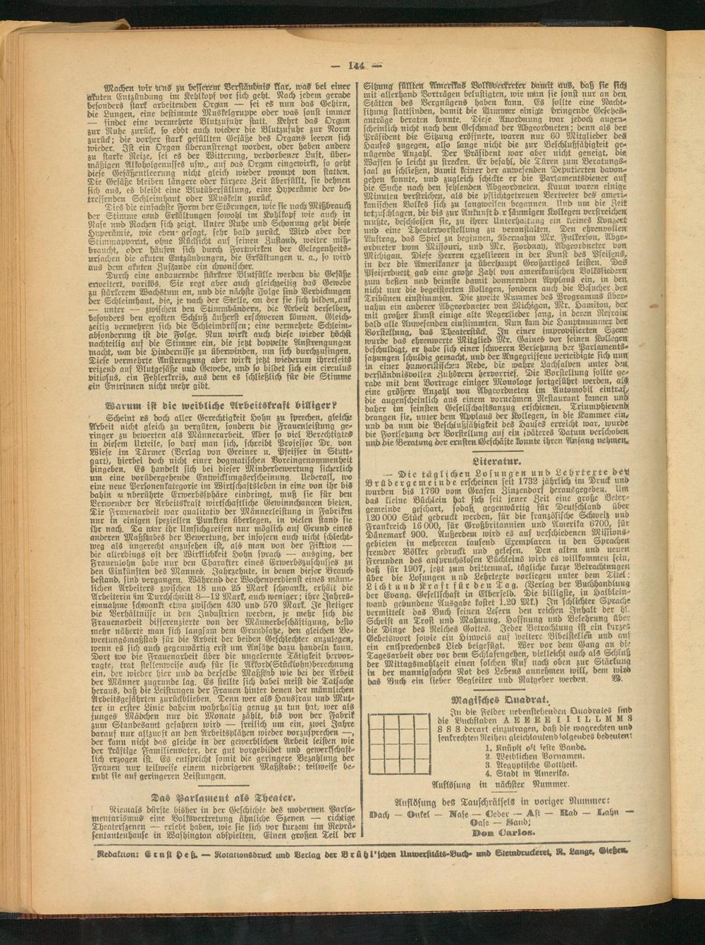 Redaktion: Ernst Heß.— Rotationsdruck und Verlag der B r ü ht°scheu Universitäts-Buch* und Stemdruckeret, R, Lange, Gieße»»