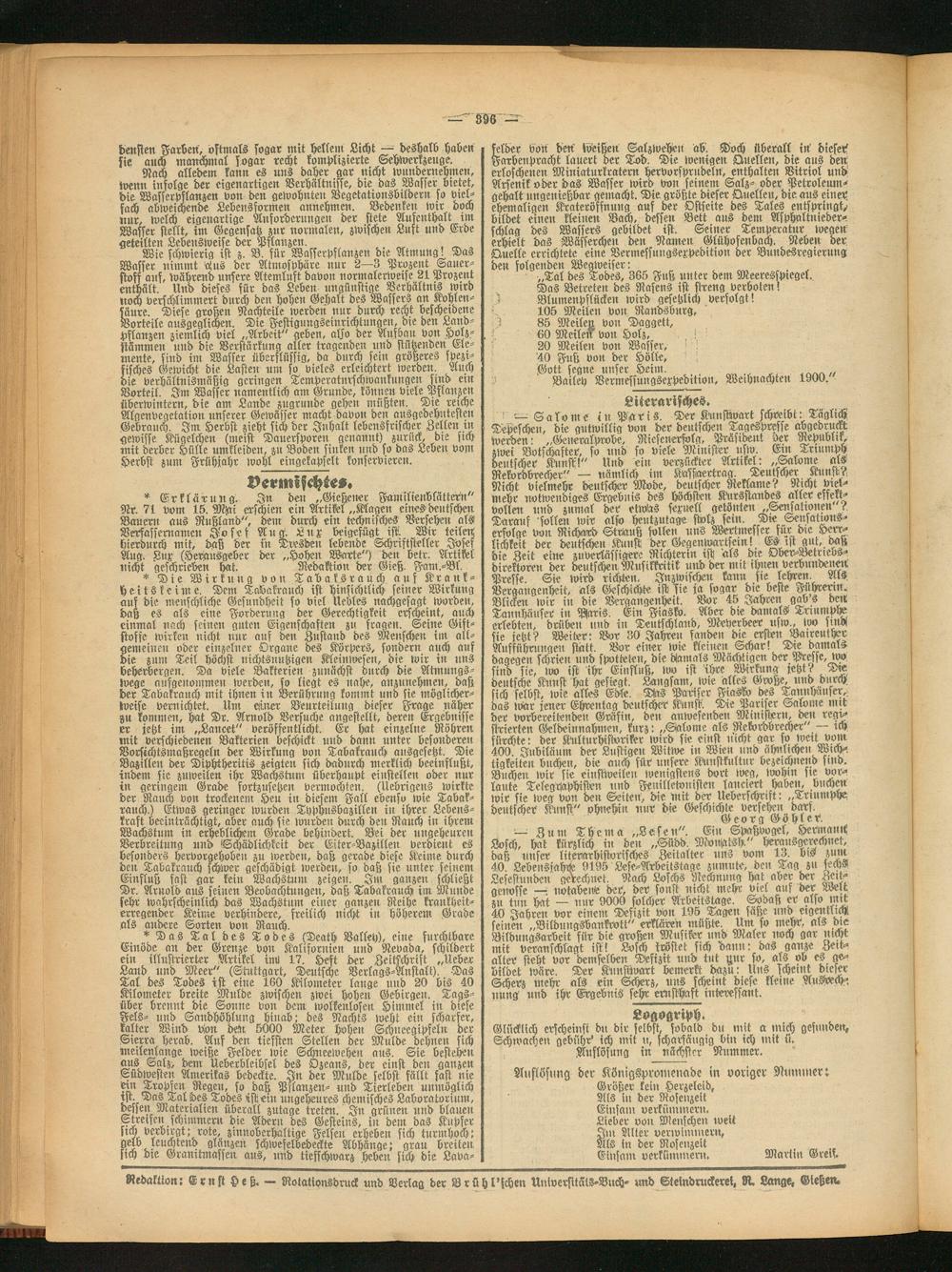 Redaktion: Ernst Heß. — Rotationsdruck und Verlag der Brühl'schen Universttäts-Buch- und Steindruckerei, R. Lange, Gießen«