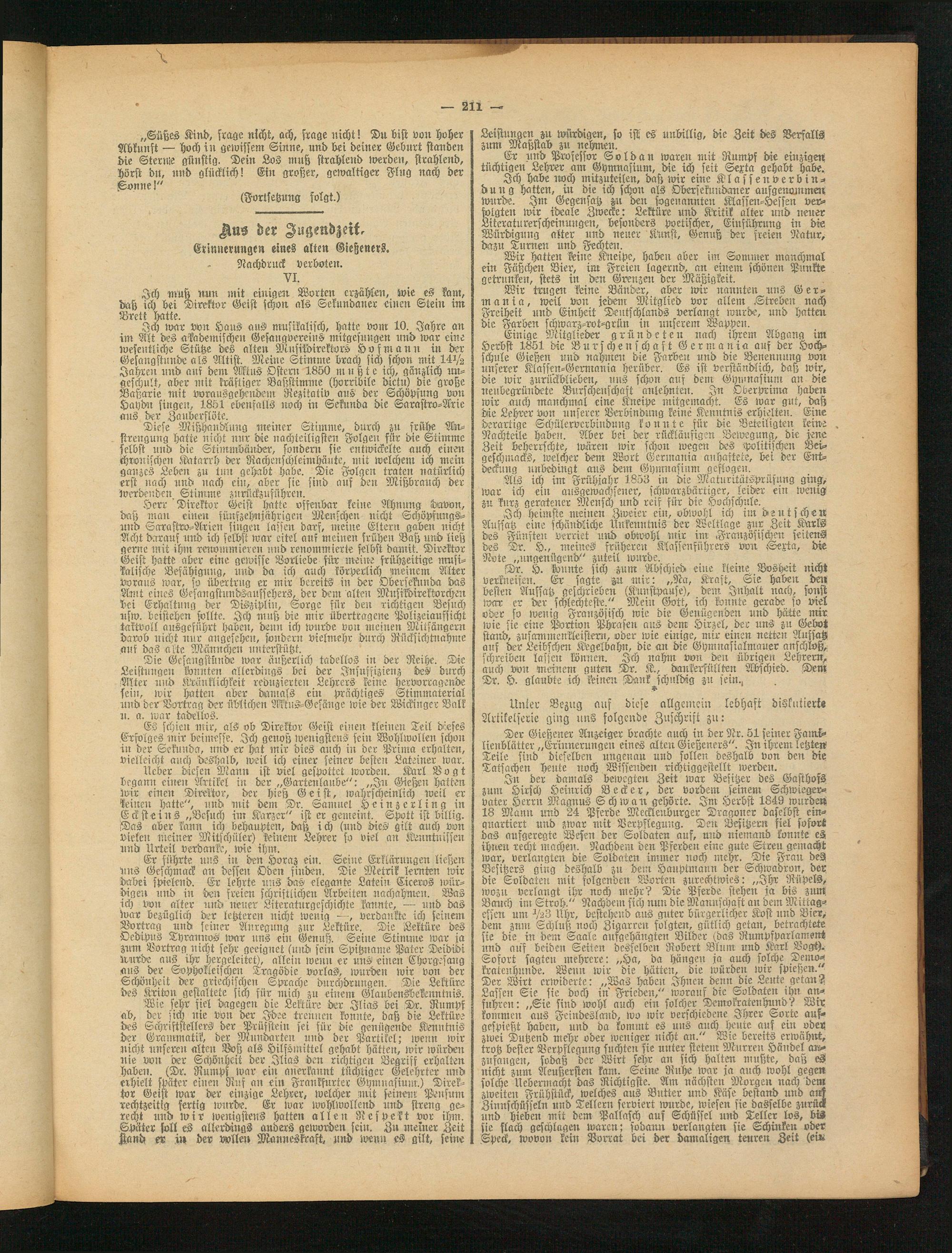 Der Gießener Anzeiger brachte auch in der Nr. 51 seiner Famk- lienblätter „Erinnerungen eines altest Gießeners". In ihrem letzten Teile sisid dieselben ungenau und sollest deshalb von den die Tatsachen heute tsoch Wifsessden richtiggestellt luerben.