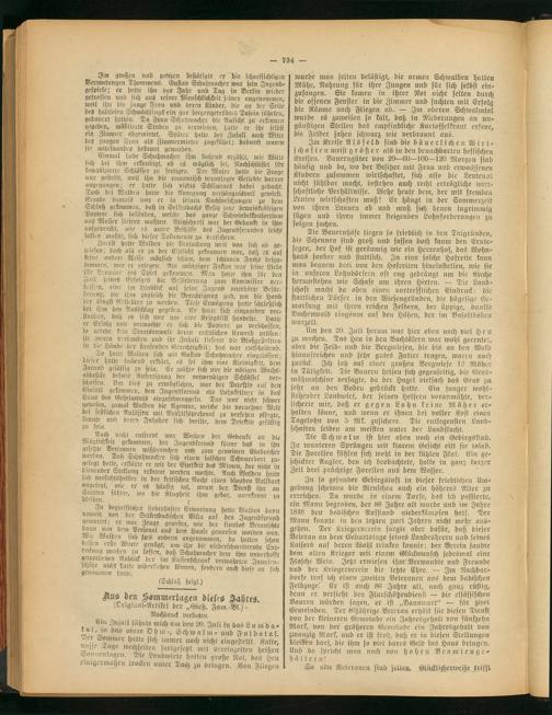 Nm den 20. Juli herum war hier oben noch viel Heu zu machen. Das Heu in den Bachtälern war wohl geerntet, aber die F-eld- und die Bergwiefen, die bis an den Wald hinaufreichen und sehr gutes Futter tragen, waren noch zurück. Ich sah auf einer großen Bergwiese 12 Mäher in Tätigkeit. Die Bauern helfen sich gegenseitig, die Grasmähmaschine versagte, da der Hagel vielfach das Gras zu sehr an den Boden gedrückt hatte. Ein junger wohl- stehender Landwirt, der seinen Helfern voranmähte, versicherte mir, daß er gegen Lohn keine Mäher erhalten könne, und wenn er ihnen bei voller Kost einen Tagelohn von 5 Mk. zusichere. Tie entlegensten Landschaften leiden am meisten unter der Landflucht.