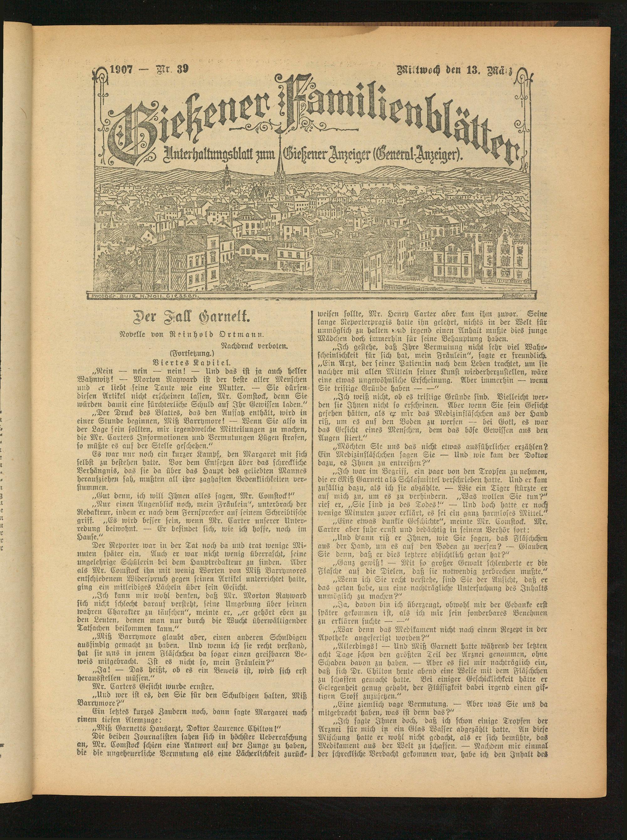 „Nur einen Augenblick noch, mein Fräulein", unterbrach der Redakteur, indem er nach dem Fernsprecher auf seinem Schreibtische griff. „Es wird besser sein, wenn Mr. Carter unserer Unterredung beiwohnt. — Er befindet sich, wie ich hoffe, noch im Hause."