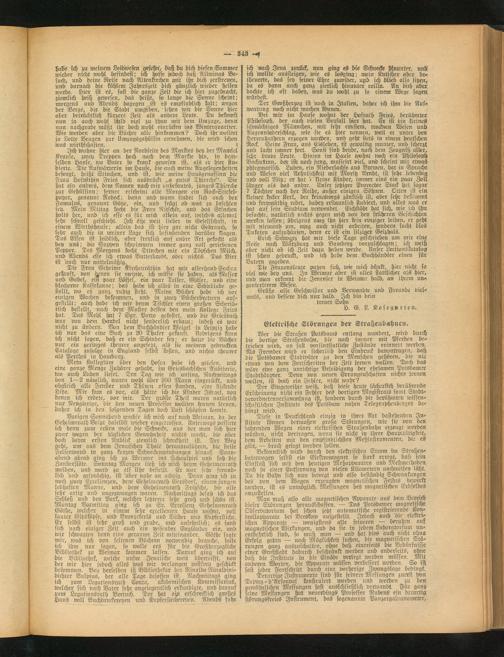 Tiefe in Deutschland einzig in ihrer Art dastehenden Institute können dermaßen große Störungen, wie sie von den fahrenden Wagen einer elektrischen Straßenbahn erzeugt werden würden, nicht Vertragen, wenn sie nicht in ihrer Haupttätigkeit, dem Arbeiten mit den empfindlichsten Meßinstrmnenten, die es gibt, — brach gelegt werden sollen.