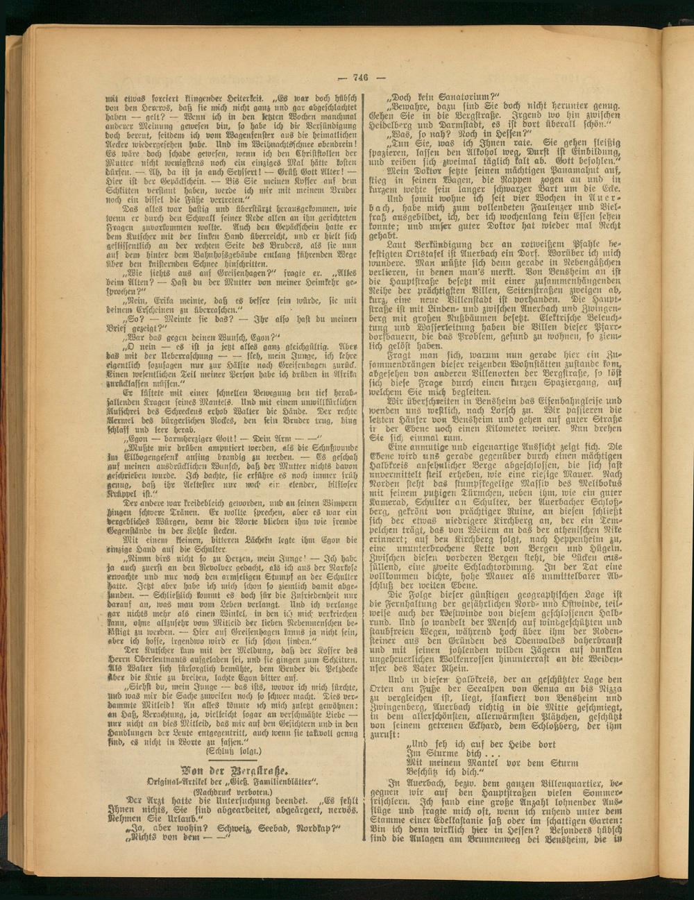„Bewahre, dazu sind Sie doch nicht herunter genug. Gehen Sie in die Bergstraße. Irgend wo hin zwischen- Heidelberg und Darmstadt, es ist dort überall schön."