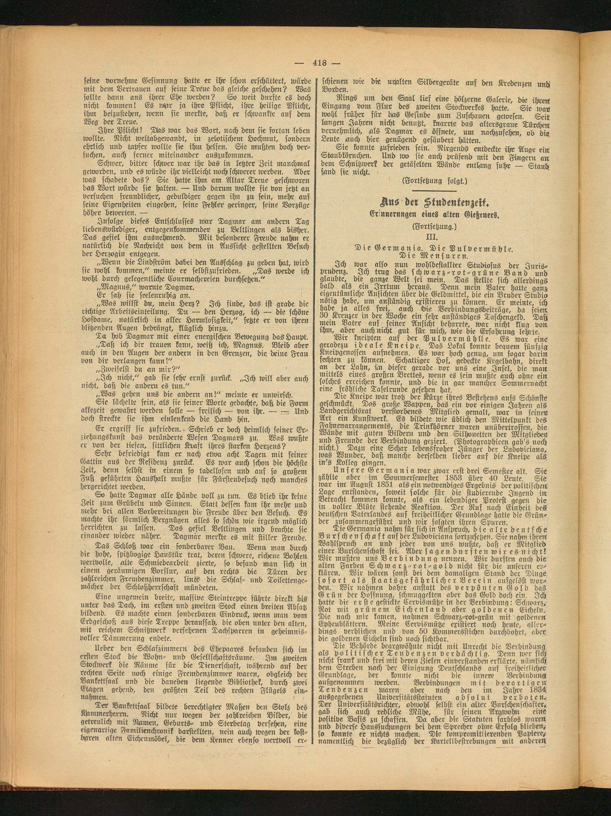 Die Germania. Die Pulvermühle. Die Mensuren.