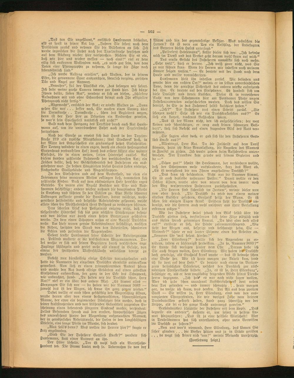 Verständnislos schüttelte der Fuhrherr mit dem Kopfe. „Das! begreife ein anderer", äußerte er, um sofort in hellem Unmut hinzuzusetzen: „Das ist ja eine heillose Wirtschaft! Wer in Deubelsnamen hat sich unterstanden ohne mein Vorwissen die Droschke zu fahren?"