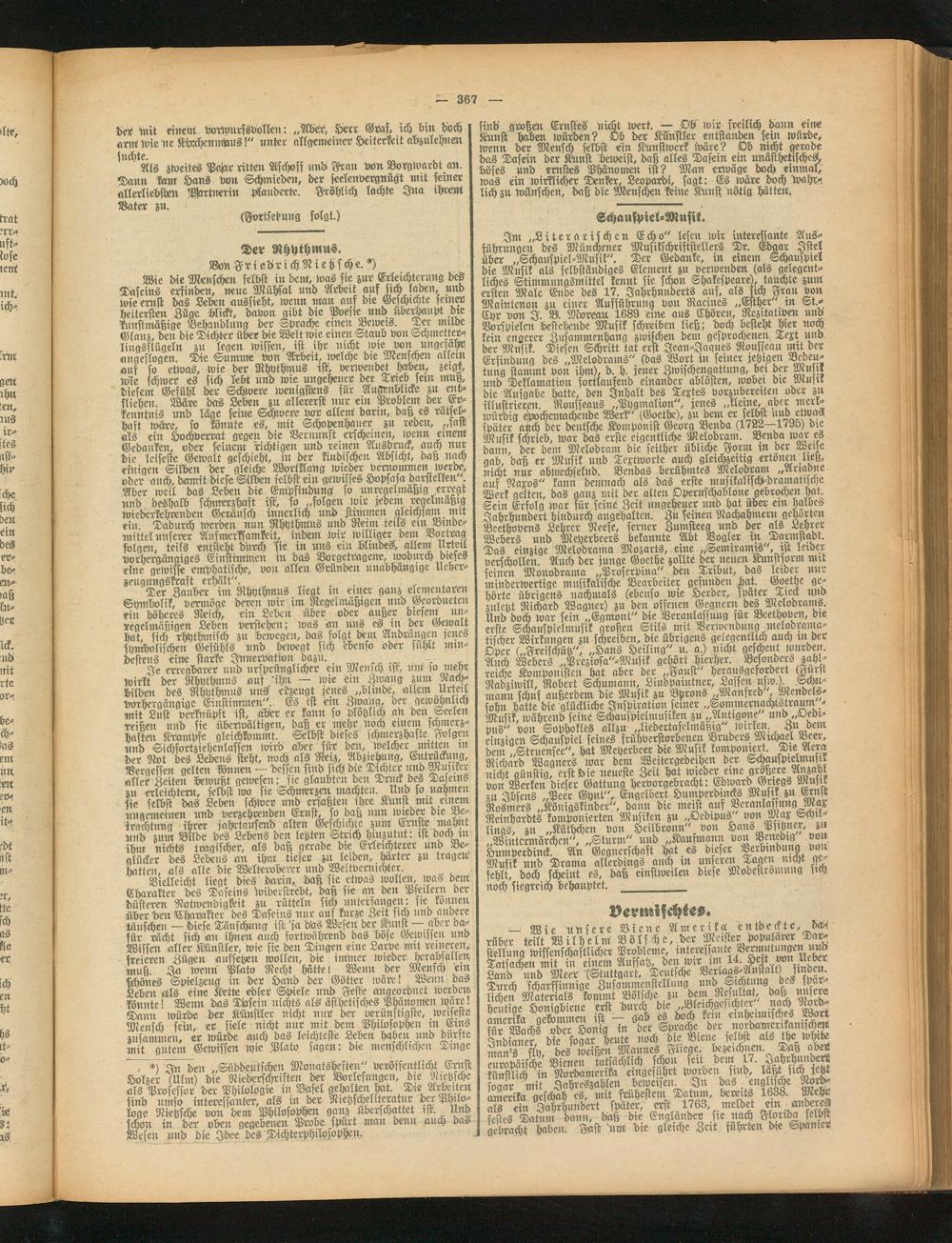 . *) In deil „Süddeutschen Monatsheften" veröffentlicht Erlist Holzer (Ulm) die Niederschriften der Vorlesungen, die Nietzsche als Professor der Philologie in Basel gehalten hat. Tie Arbeiten sind umso interessanter, als in der Ntetzscheliteratur der Philologe Nietzsche von den« Philvsophen ganz überschattet ist Und ft^on in der oben gegebenen Pivbe spurt man denn auch das Wesen und die Idee des TichterphilosopHeu.