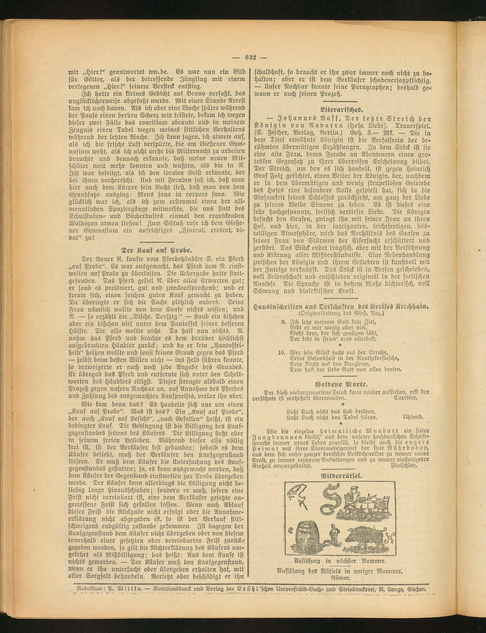 Redaktion: P. Wittko. — Rotationsdruck und Verlag der Vrühl'schen Universitäts-Buch- und Steindruckerei, R. Lange, Gießen.