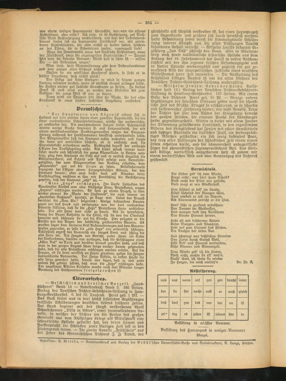 Redaktion: P. W ittko. — Rotationsdruck und Verlag der Brühl'schen Universitäts-Buch- und Steindruckerei, R. Lange, Gießern