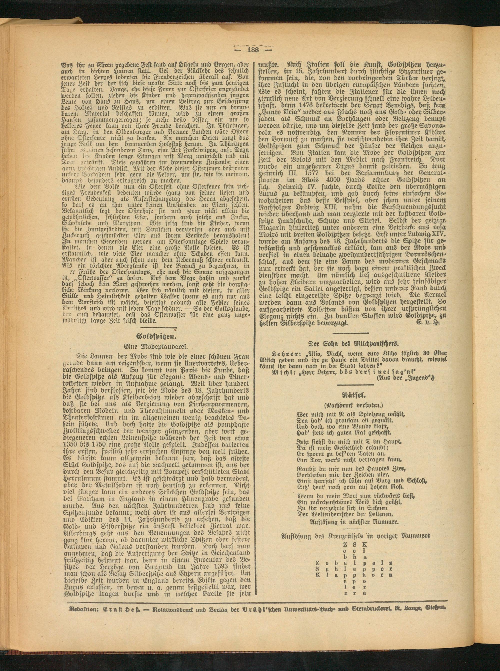 Auflösung des Kreuzrätsels in voriger Nummert Z 8 K