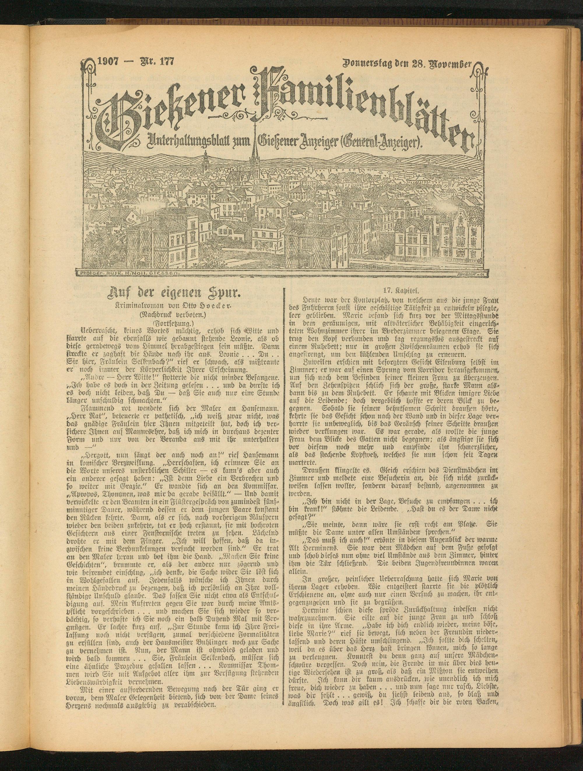 Heute war der Konlorplatz, vou welchem aus die junge Fran des Fnyrherrn sonst ihre geschäftige Tätigkeit zu entwickeln pflegte, lccr geblieben. Marie vefand sich kurz vor der Mittagsstunde in dem geräumigen, utit altväterlicher Behäbigkeit eingerichteten Wohnzimmer ihrer im Vvrderzimmer belegen en Etage. Sie trug den Kopf verbunden und lag regungslos ausgestreckk auf einem Ruhebett: nur in großen Zwischenräumen erhob sie sich angestrengt, um den kühlenden Umschlag zu erneuern.