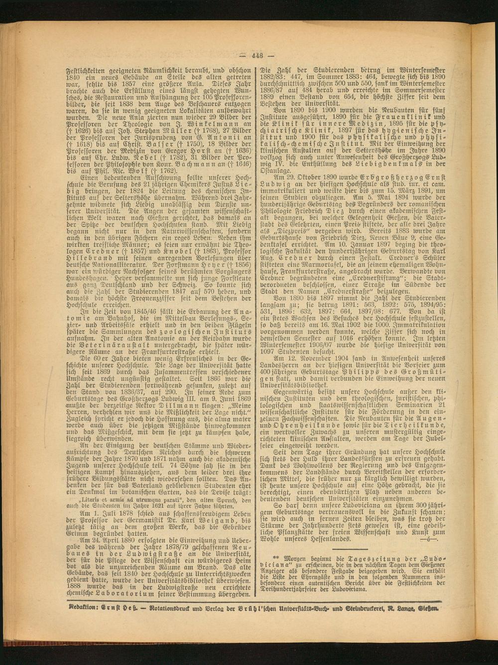 Redaktion: Ernst Heß. — Rotationsdruck und Verlag der Brühl'schen Universitäts-Buch- und Steindruckeret, R. Lange, Gießen.
