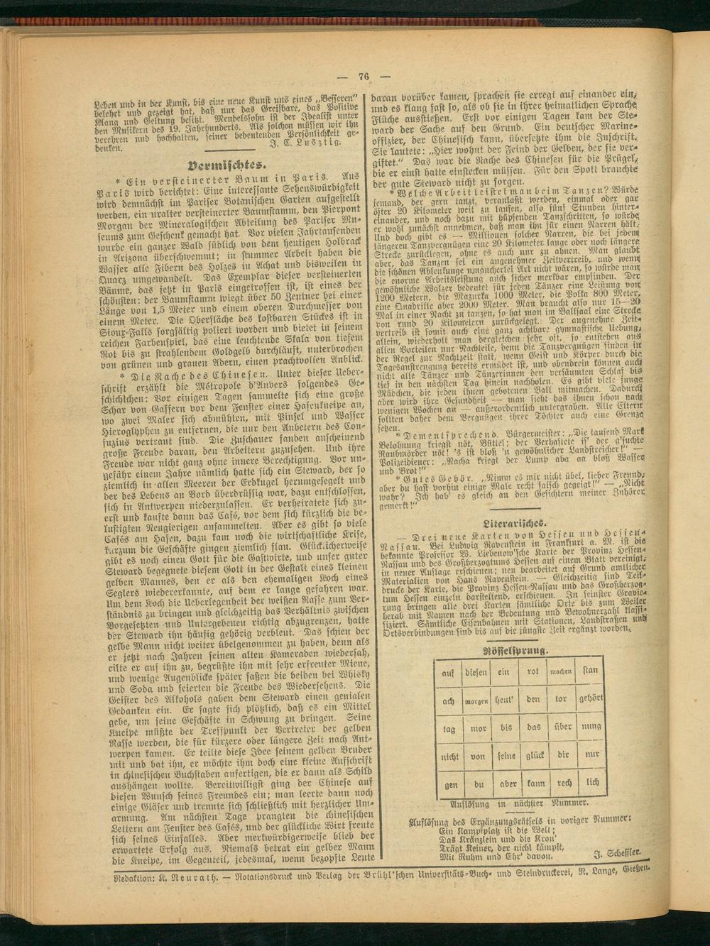 Redaktion: K. Neurath. - Rotationsdruck und Verlag der Brühl'schen Universitäts-Buch- und Steindruckerei, R. Lange, Gießen.