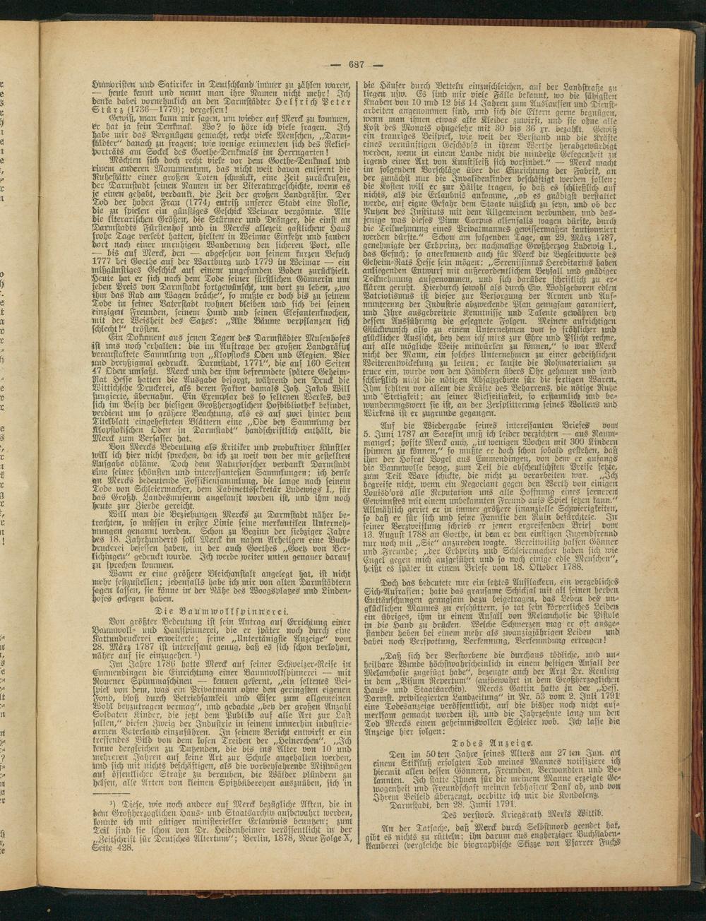 *) Diese, wie noch andere auf Merck bezügliche Akten, die in dein' Großherzvglichen Haus- und Staatsarchiv! aufbewahrt werden, konnte ich mit gütiger ministerieller Erlaubnis benutzen'; zum Teil sind sie schon' von Dr. .Heidenheimer veröffentlicht in der „Zeitschrift für Deutsches Altertum"; Berlin, 1878, Neue Folge X, Seite 428.