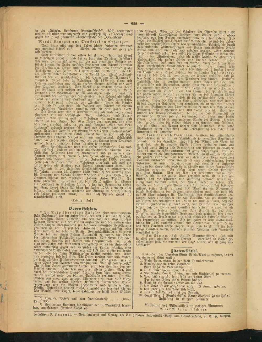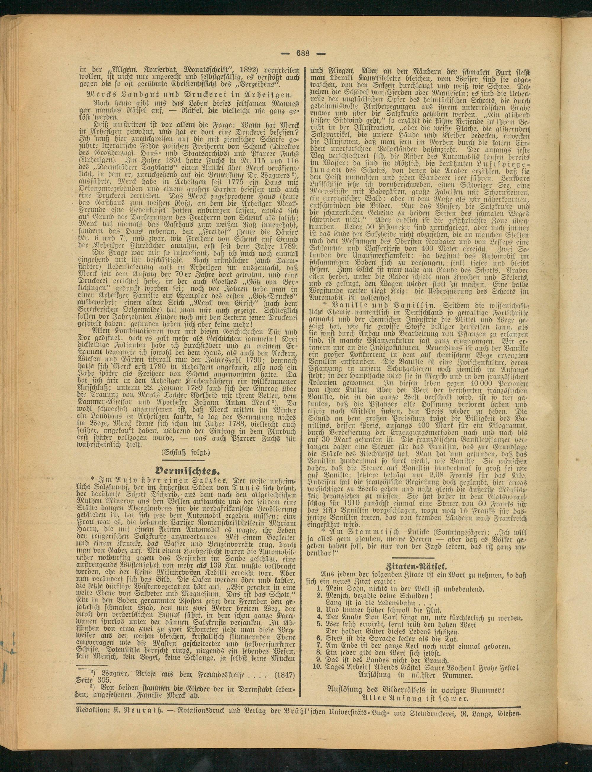 Redaktion: K. Neurath. - Rotationsdruck und Verlag der Brühl'schen Universitäts-Buch- und Steindruckerei, R. Lange, Gießen.