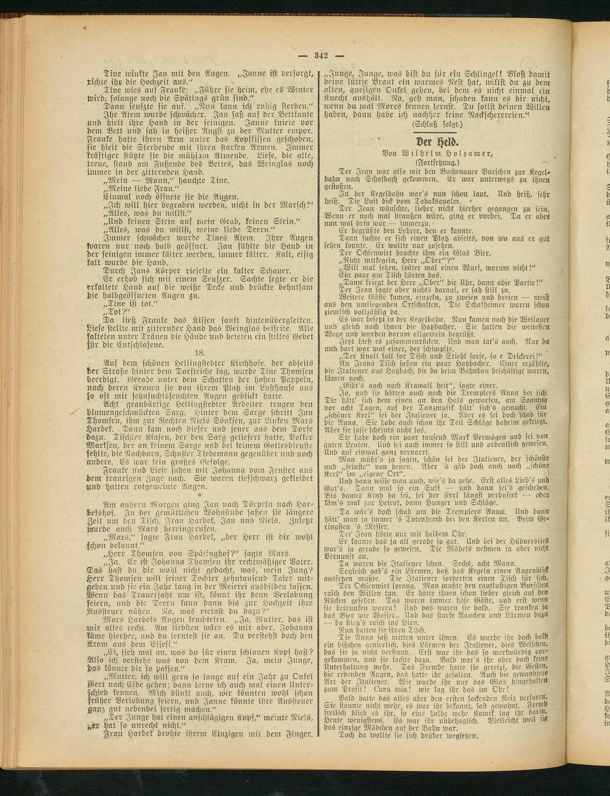 Ans dem schönen Hellingstedter Kirchhofe, der abseits der Straße hinter dem Dorfteiche lag, wurde Tine Thomsen Heerdigt. Gerade unter dem Schatten der hohen Pappeln, nach deren Kronen sie von ihrem Platz im Lüsthause ans so oft mit sehnsuchtsfeuchten Augen geblickt hatte.
