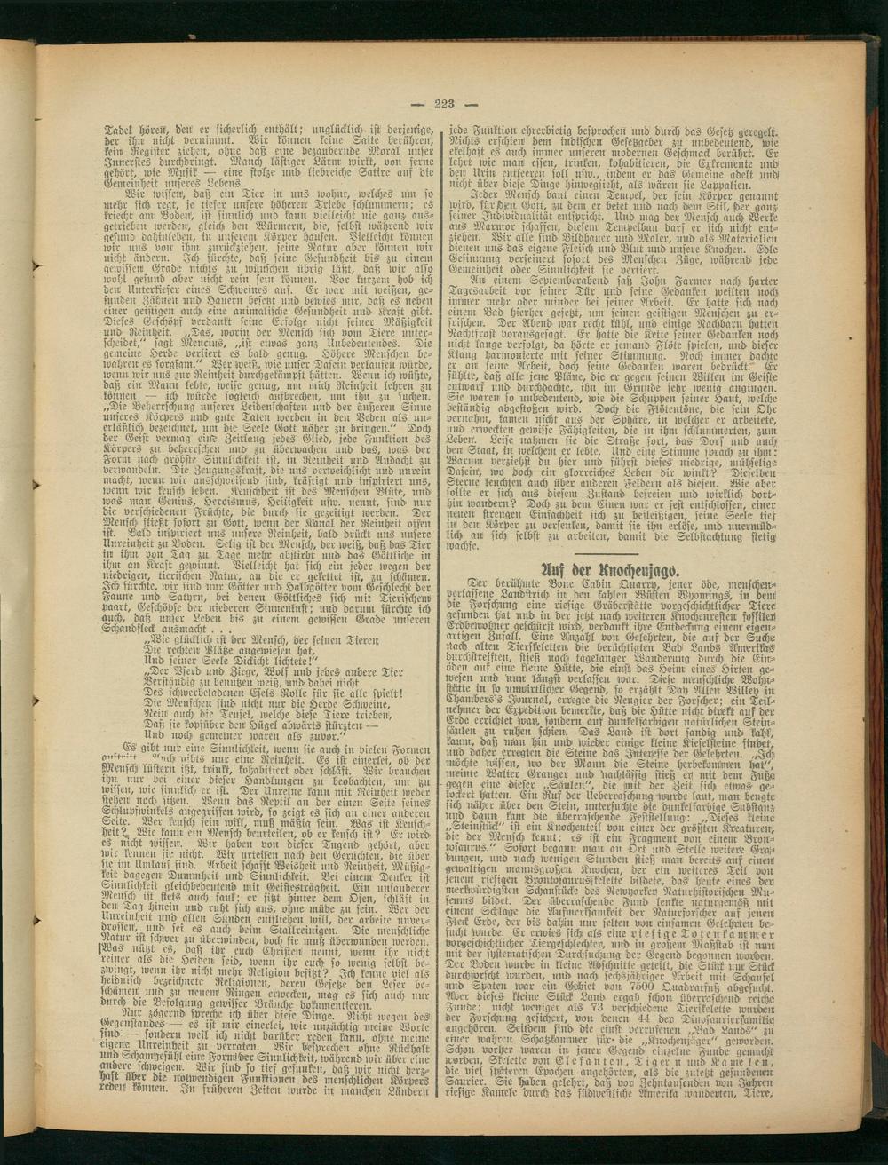 Jeder Mensch baut einen Tempel, der sein Körper genannt wird, für Kien Gott, zu dem er betet und nach dem Stil, her ganz- seiner Individualität entspricht. Und mag der Mensch auch Werke aus Marmor schaffen, diesem Tempelbau darf er sich nicht ent» ziehen. Wir alle sind Bildhauer und Maler, und als Materialien dienen uns das eigene Fleisch und Blut und unsere Knochen. Edle Gesinnung verfeinert sofort des Menschen Züge, während jede Gemeinheit oder Sinnlichkeit sie vertiert.