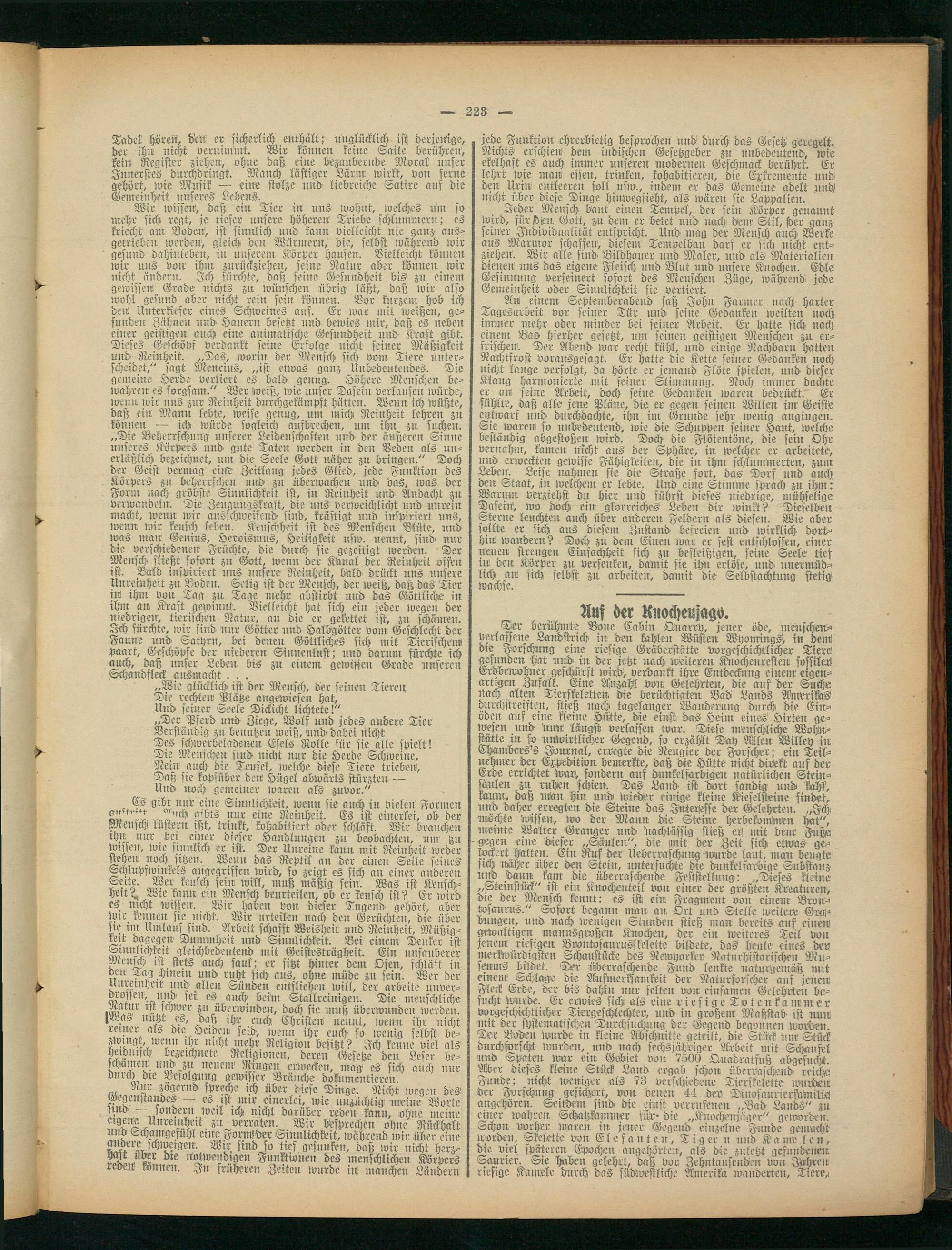 . Es gibt Nur eilte Sinnlichkeit, wenn sie auch in vielen Formen nur eilte Reinheit. Es ist einerlei, ob der Mensch lüstern ißt, trinkt, kohabiticrt oder schläft. Wir brauchen rhn nur vci einer dieser Handlungen zu beobachten, um tzn wrssen, wie sinnlich er ist. Der Unreine kann mit Reinheit weder stehen- poch itfjen. Wenn das Reptil an der einen Seite seines Schlupfwinkels angegriffen wird-, so zeigt es sich an einer anderen Seite. Wer keusch sein will, muß mäßig sein. Was ist Keuschheit?^ Wie kann cm Mensch beurteilen, ob er keusch ist? Er wird- es nicht wissen.. Wir haben von dieser Tugend gehört, aber wtc kennen sie nicht. Wir urteilen nach den Gerüchten, die über sie nn Umlauf sind-, Arbeit schafft Weisheit und Reinheit, Müßigkeit dagegen- Dummheit und Sinnlichkeit. Bei einem Denker ist Snmltchkeit gleichbedeutend mit Geistesträgheit. Ein unsauberer .Uccnul)' ist stets auch faul; er sitzt hinter dem Ofen, schläft in den wag Hinein und ruht sich aus, ohne müde zu sein. Wer der unremhett und allen Sünden entfliehen will, der arbeite unver- orosien', und |et es auch beim Stallrcinigen. Die menschliche lirol» ■■ , stvwer zu überwinden, doch sie ums; überwunden werden. I. .rty lUltzt cs, daß ihr euch Christen- nennt, wenn ihr nicht reiner al- die- Heiden seid, wenn ihr euch- so- wenig selbst be- zwingt, wenn ihr nicht mehr Religion besitzt ? Ich kenne viel als heidunch- bezeichnete- Religionen, bereit Gesetze den Leser beschämen und- zu neuem' Ringen erwecken, mag cs sich auch nur durch die Befolgung gewisser Branche dokumentieren.