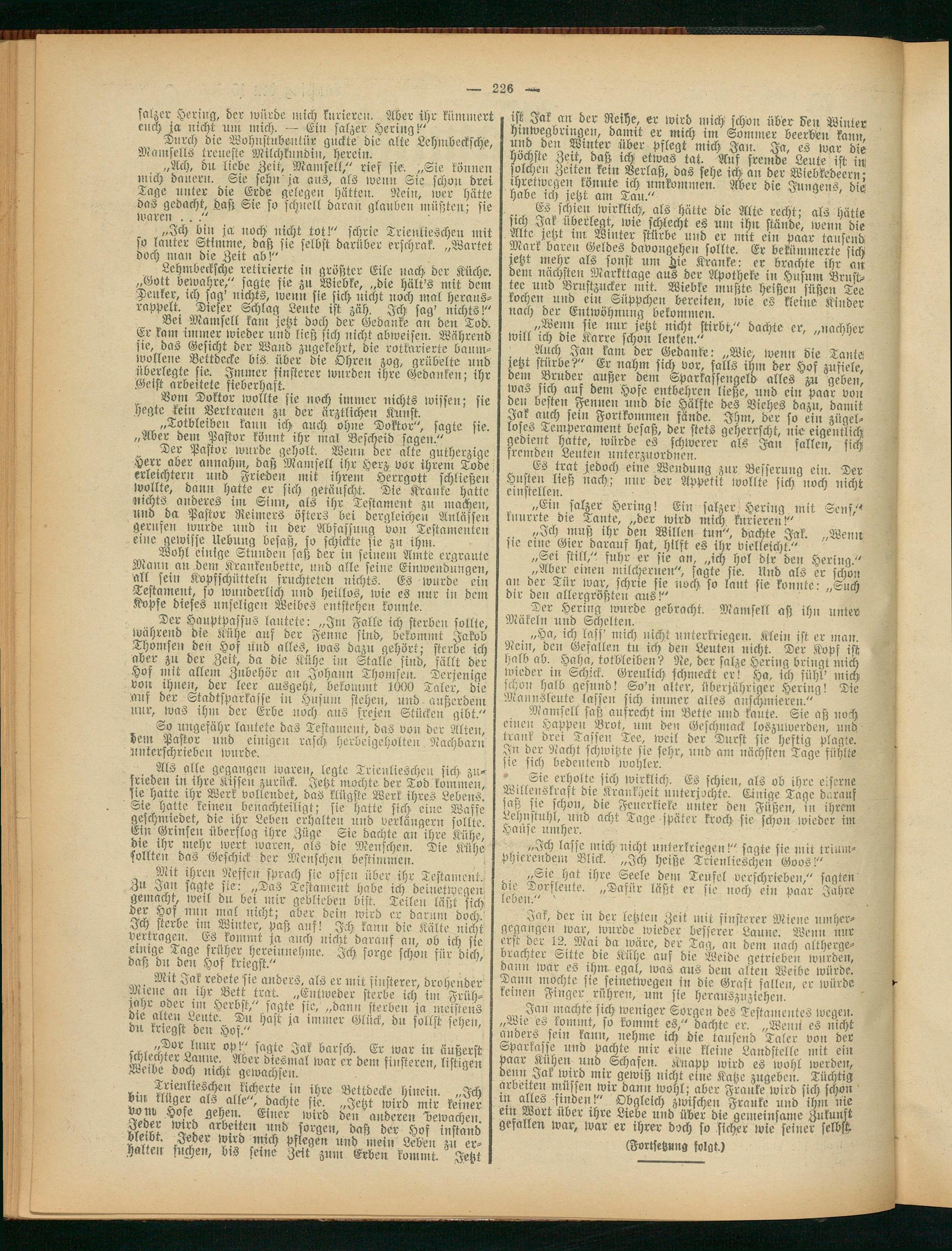 So ungefähr laiitete das Testament, das von der Alten, dem Pastor und einigen rasch herbeigeholten Nachbarn Unterschrieben imtrbe.
