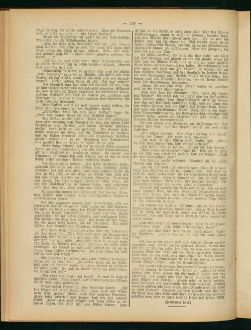 Wohl einige Stunden saß der in feinem Amte ergraute Mann an dem Krankenbette, und alle seine Einwendungen, all sein Kopfschütteln fruchteten nichts. Es wurde ein Testament, so wunderlich und heillos, luie es nur in dem Kopfe dieses unseligen Weibes entstehen konnte.