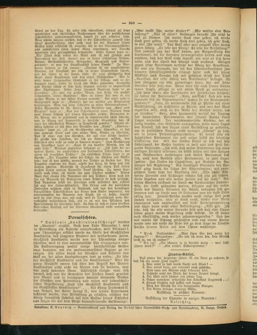 Redaktion: K. Neurath. — Rotationsdruck und Verlag der Brühl'schen Universitäts-Buch- und Steindruckerei, R. Lange, Gieße».
