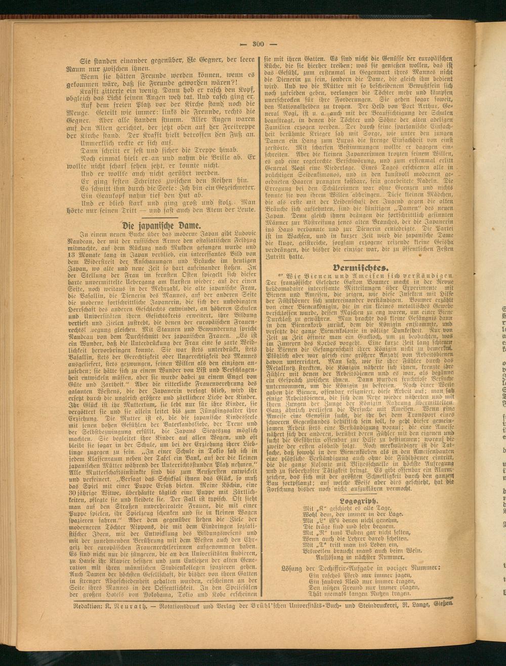 Redaktion: K, Neurath. — Rotationsdruck und Verlag der Brühl'schen Universitäts-Buch- und Steindruckerei, R. Lange, Gießen.