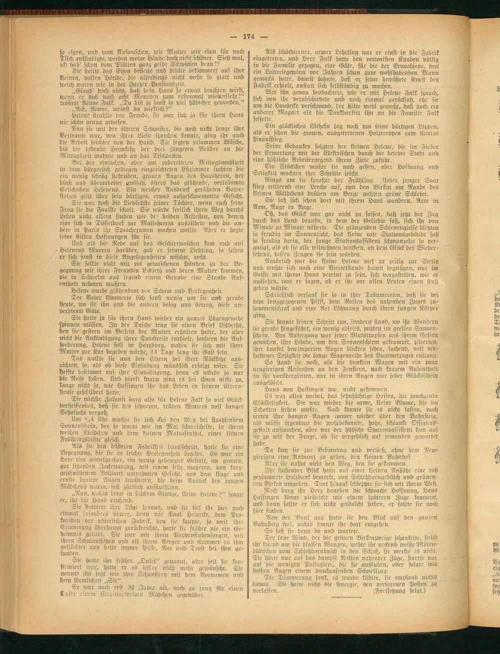 Sie hätte ja für ihren Hans wieder eilt ganzes Lügengewebe spinnen müssen. In der Tasche trug sie einen Brief Lisbeths, den sie gestern im Beisein der Blutter erhalten hatte, der aber nicht die Ankündigung ihrer Durchreise enthielt, sondern die Aufforderung, Helene soll iin Harzburg, wohin sic sich mit ihrer Mutter zur Kur begeben würde, 14 Tage lang ihr Gast sein.
