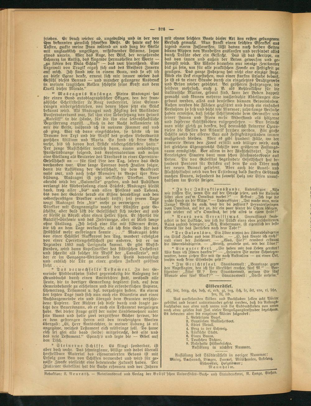 Redaktion: K. Neurath. — Rotationsdruck und Verlag der Brühl'schen Universitäls-Buch- und Steindruckerei, R. Lange, Gießen.